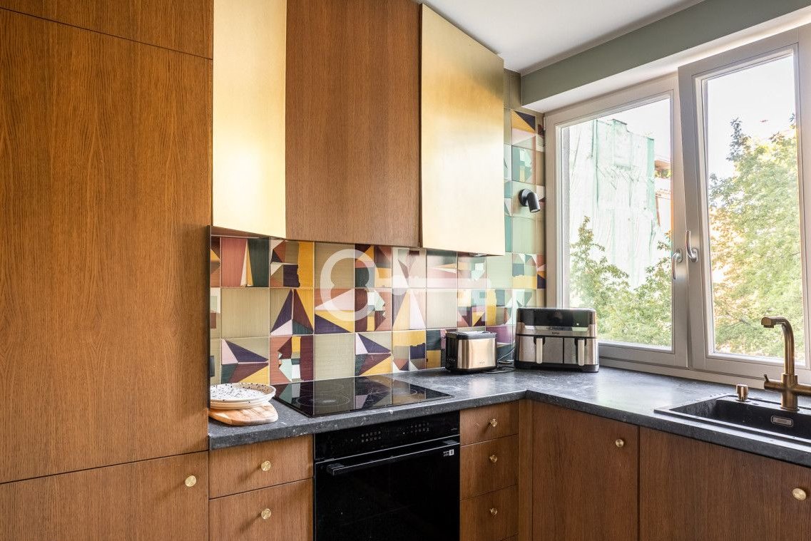 The apartment has undergone a complete renovation with attention to detail and the use of high-quality materials. The tenement house was built in 1959. It has a representative appearance and interesting architectural details. The tenement house has an elevator.