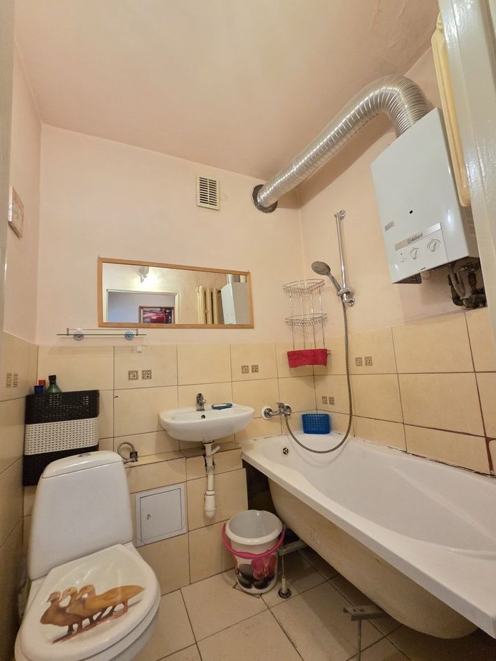 Łazienka: Z wanną, umywalką i toaletą.