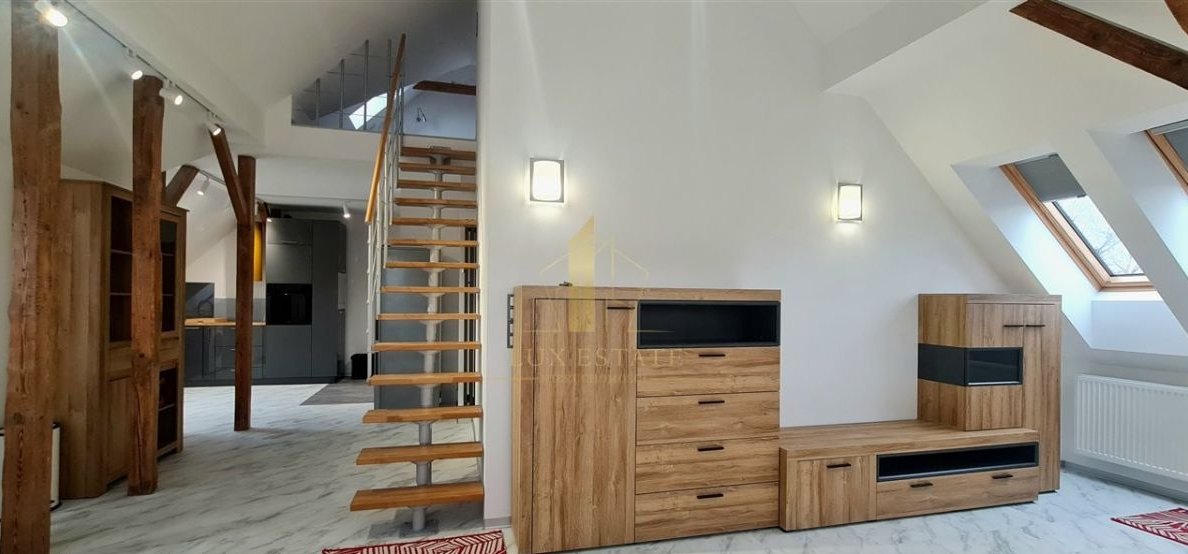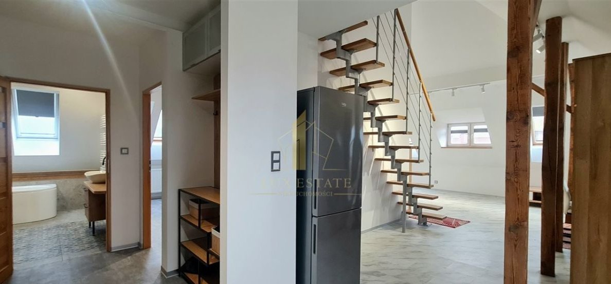Mieszkanie na poddaszu, zaadaptowane ze strychu na cele mieszkaniowe.