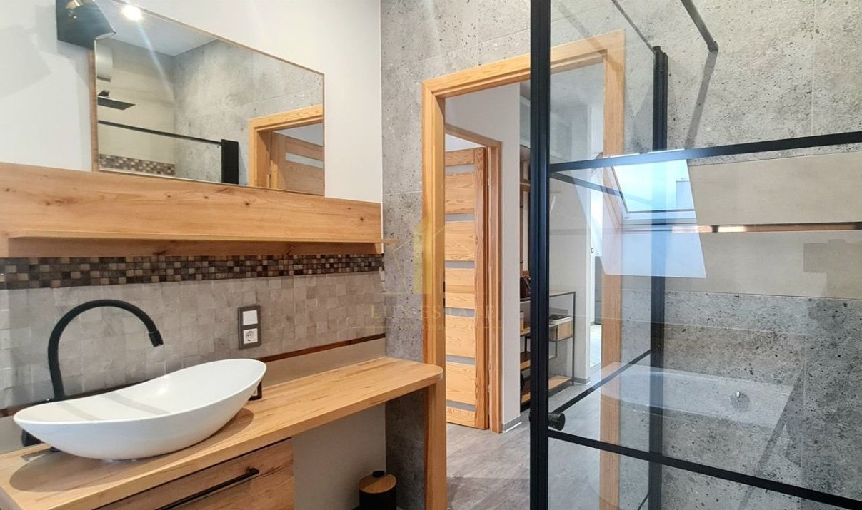 Dużym atutem jest antresola która pełni funkcję sypialni.