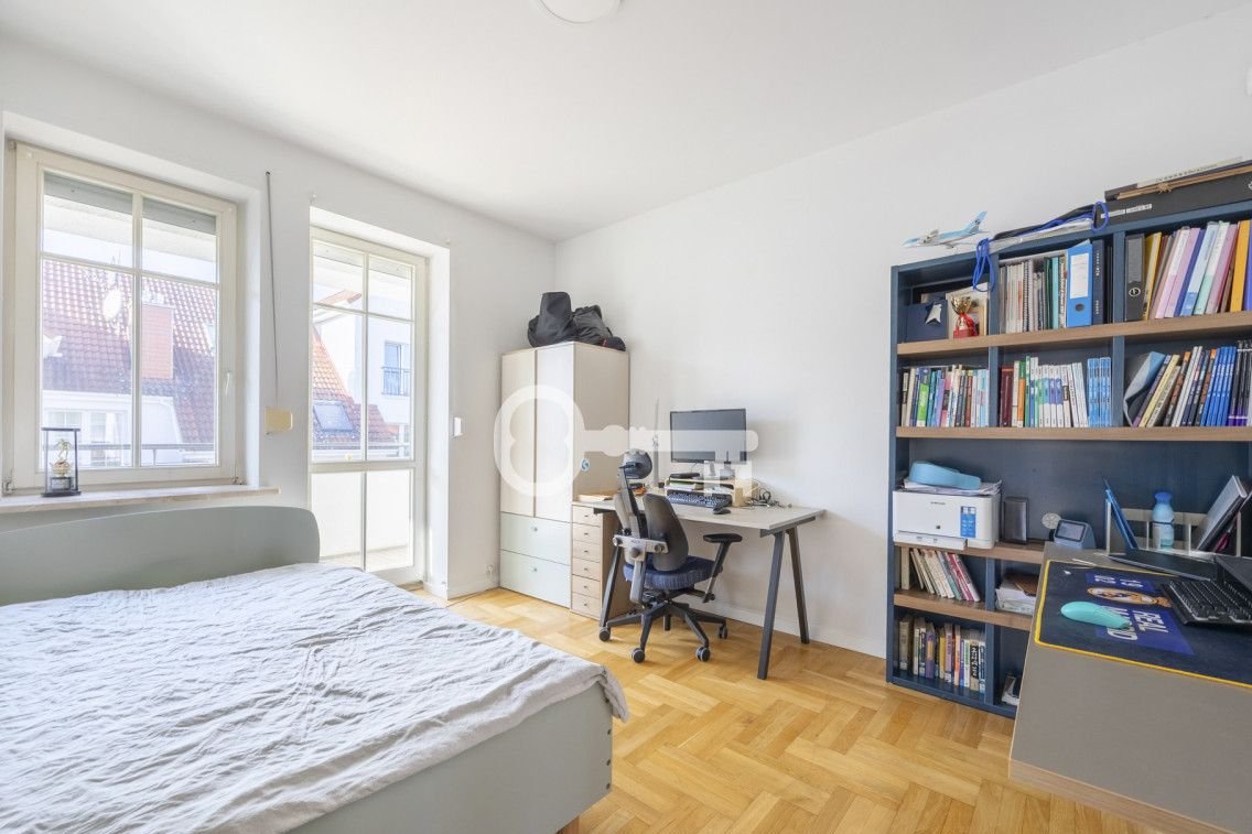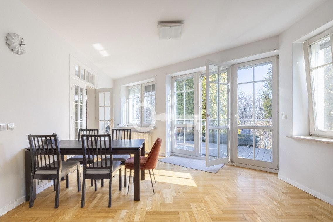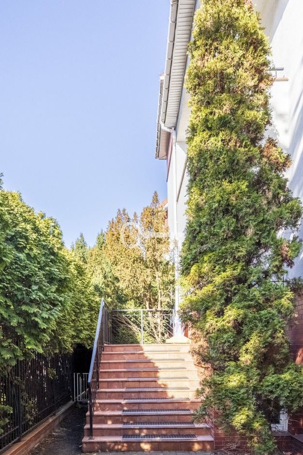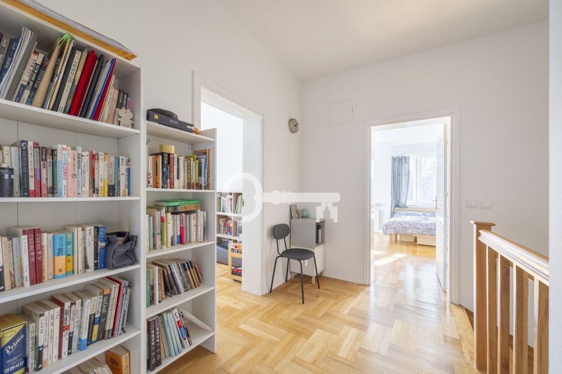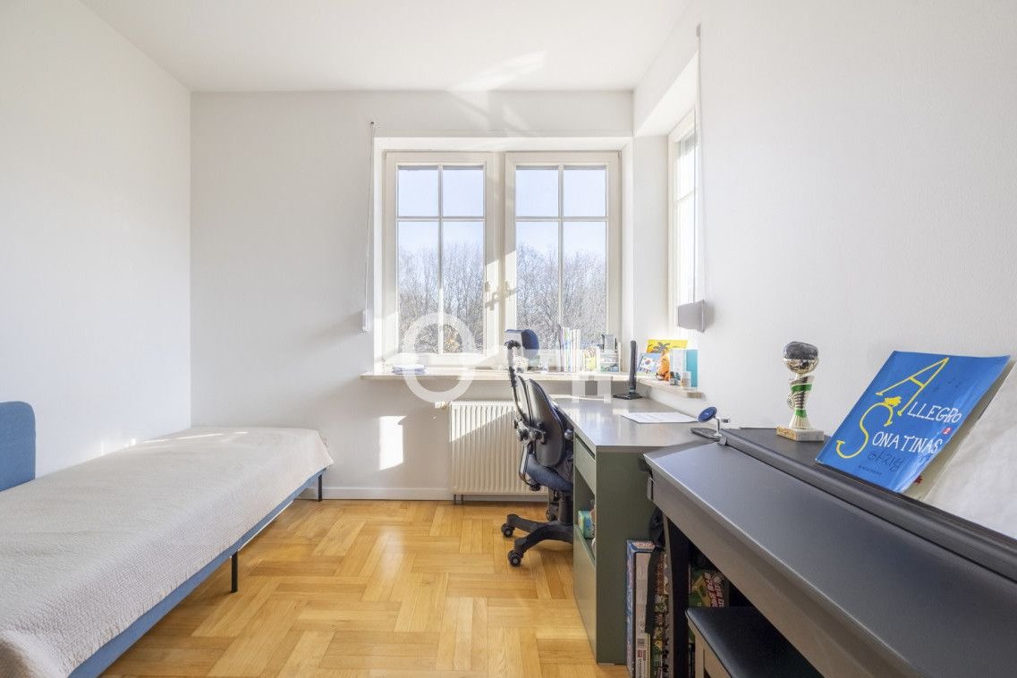 The spacious living room features a fireplace, which gives the interior a uniquely cozy atmosphere and creates the perfect place to relax. All bedrooms are quiet and offer a pleasant view of the surrounding greenery and intimate neighborhood. A separate kitchen that opens onto the terrace offers great design potential and allows the layout to be tailored to the individual needs of future owners.