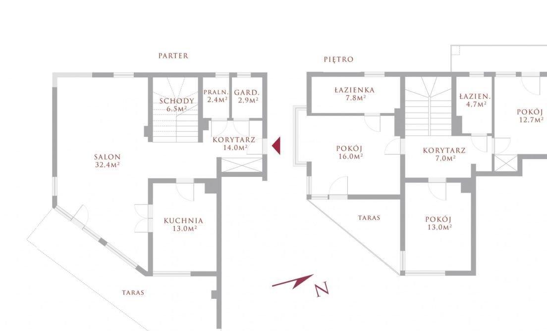 * Na piętrze są 3 sypialnie i 2 łazienki i 2 balkony