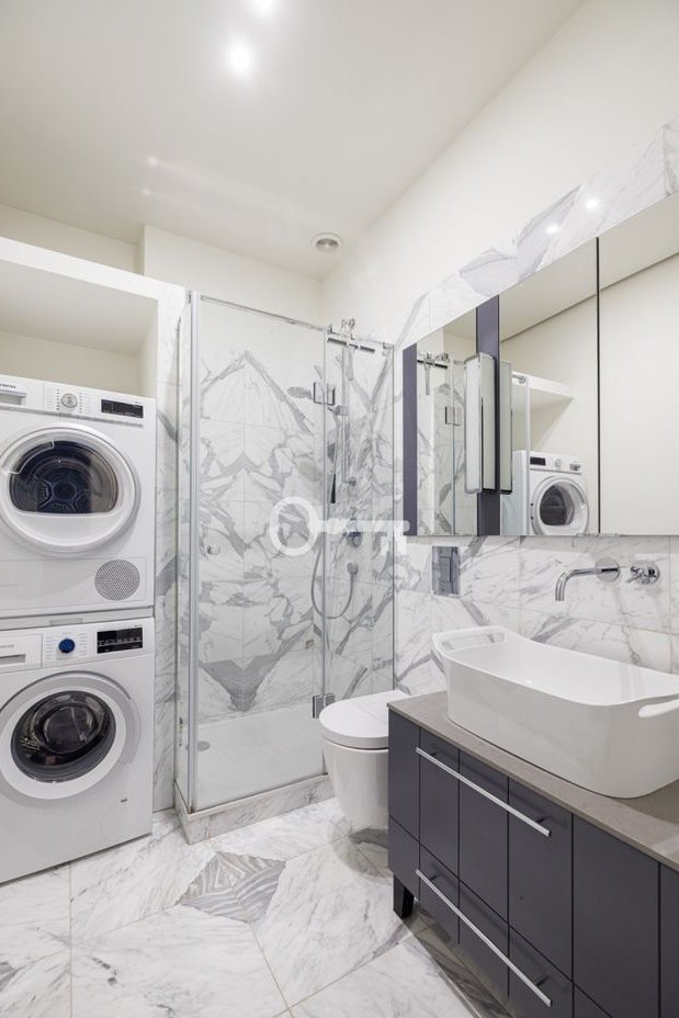 The apartment has undergone a complete renovation under the supervision of an architect, with all functions redesigned for maximum comfort. The interior maintains a harmonious aesthetic, blending classic elements with modern design. Exceptional door joinery, original oak flooring by Chapel Parket, natural stone finishes, and high ceilings add a touch of elegance.