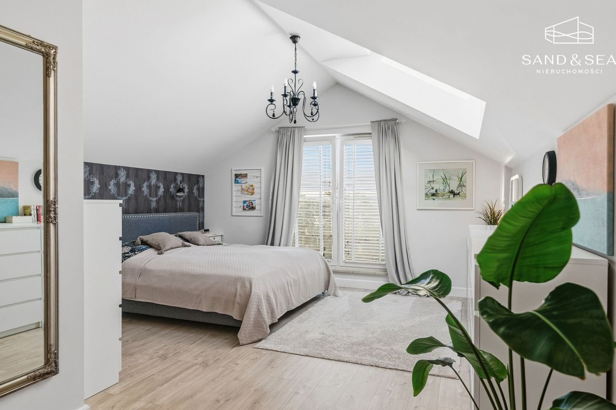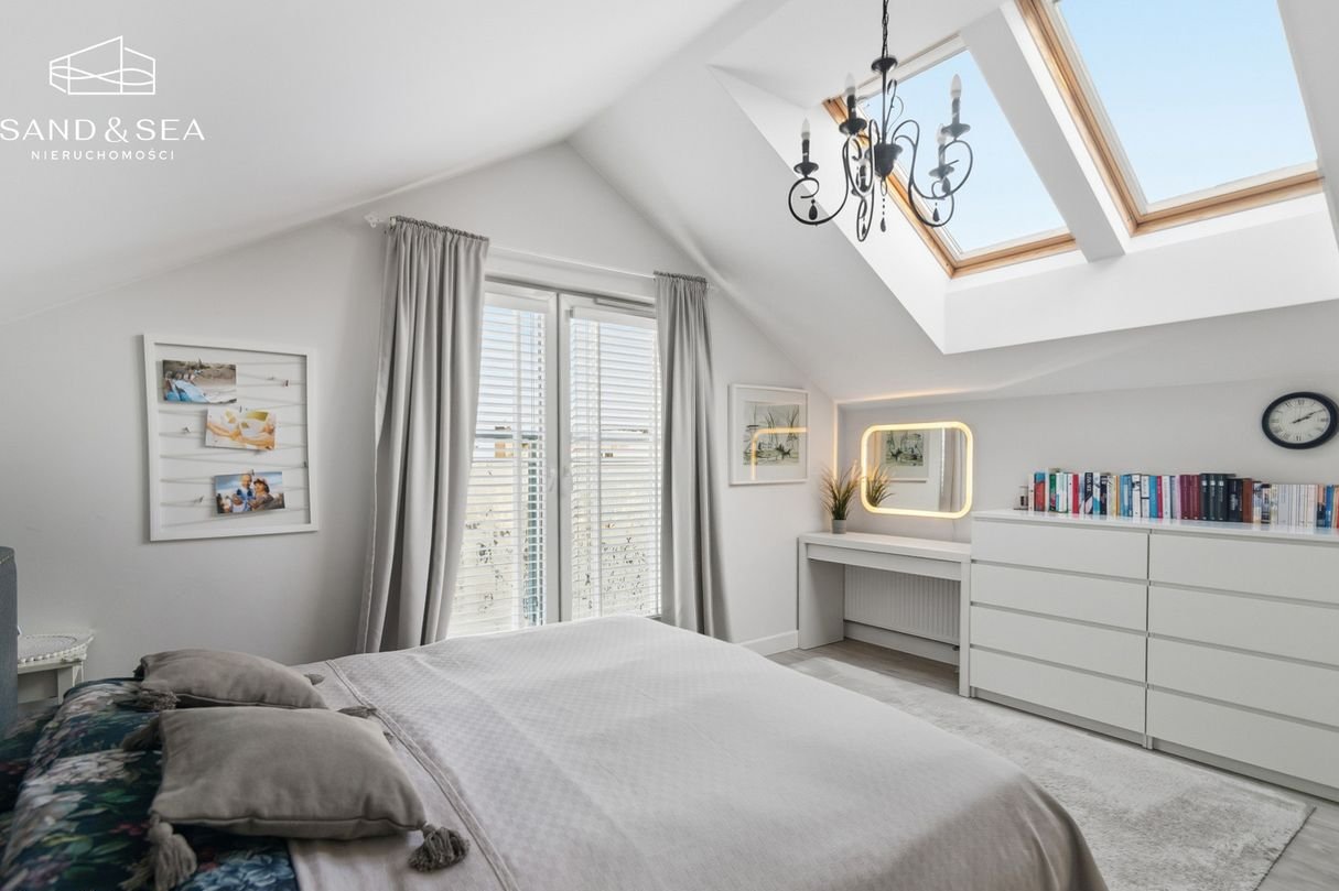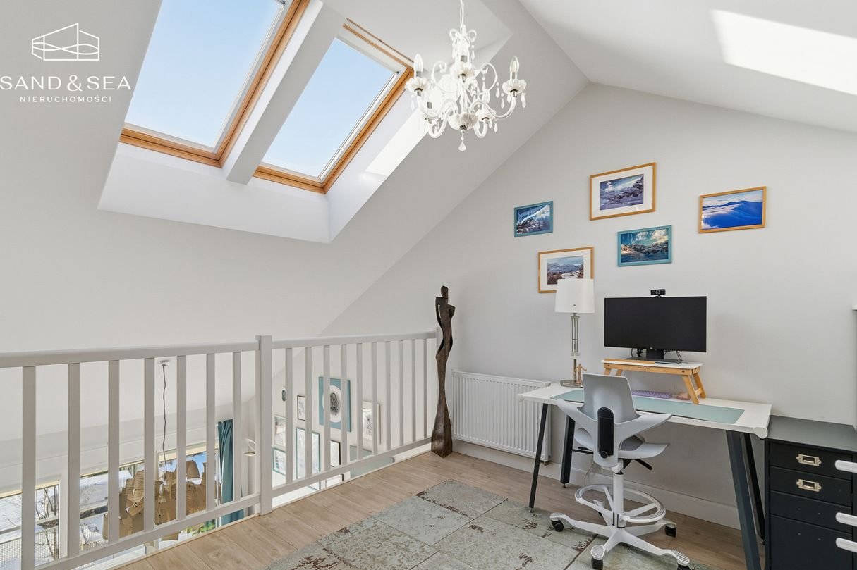 Łącznie znajduje się tu 5 okien dachowych, które bardzo dobrze doświetlają wnętrza przez cały dzień. Pomieszczenia na górnej kondygnacji są wysokie, ze skosami zaczynającymi się powyżej 165 cm, dzięki czemu są one praktycznie nieodczuwalne i w pełni użytkowe. Cała górna kondygnacja jest przestronna i jasna.