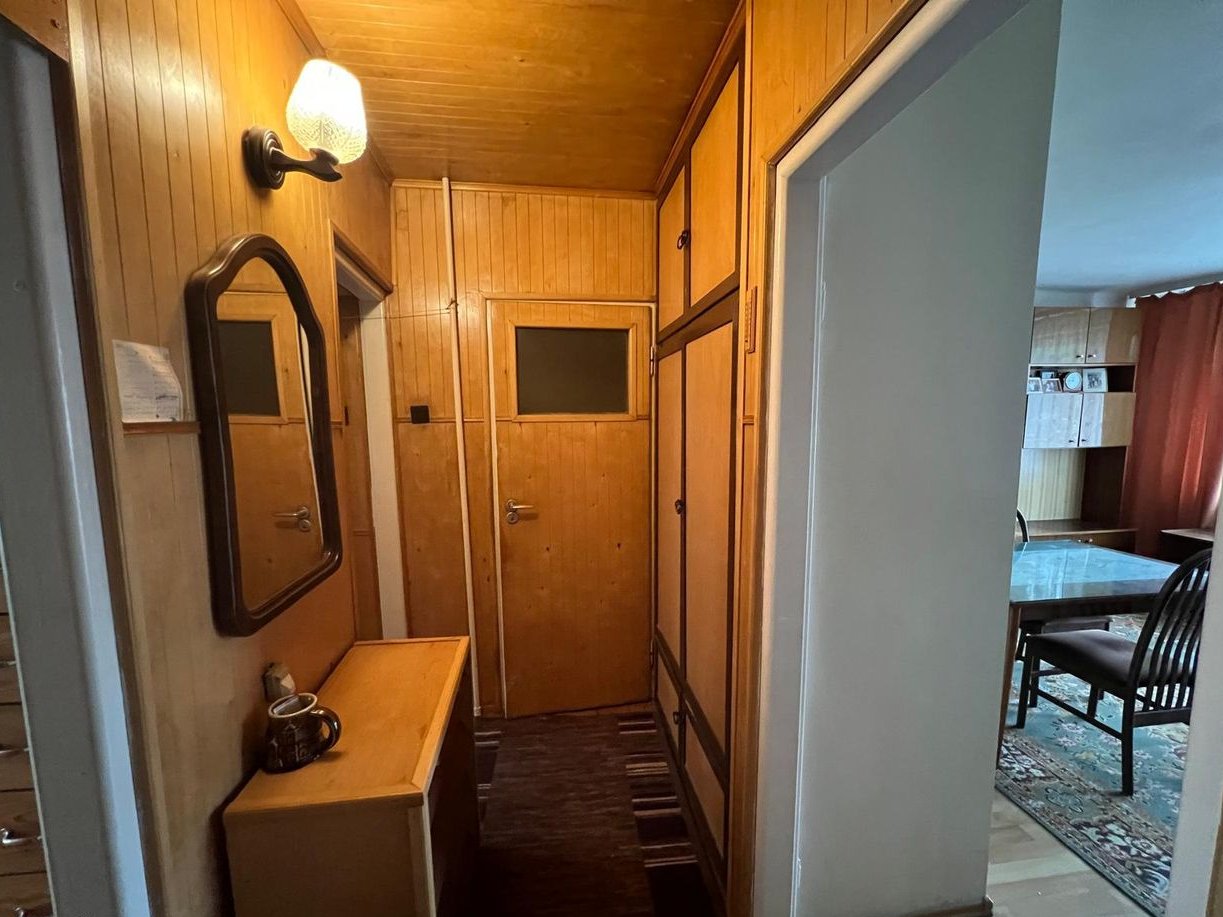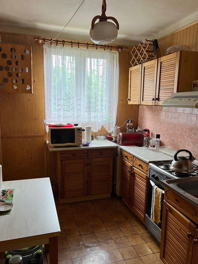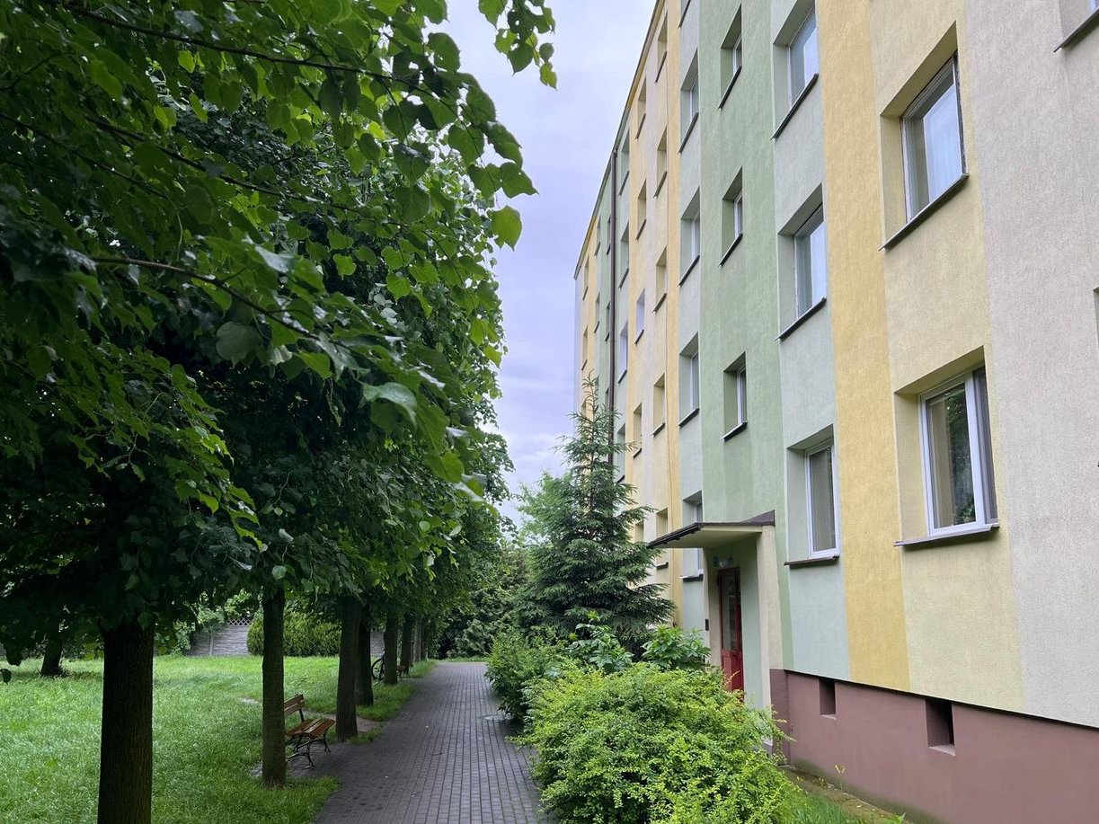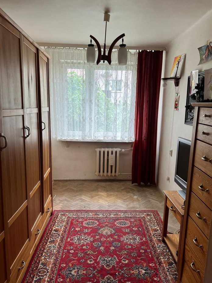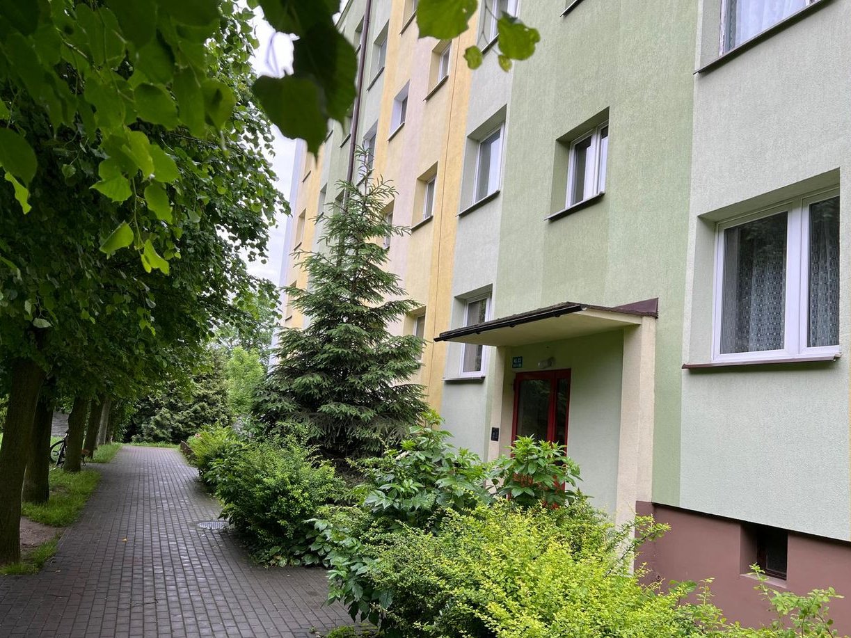 Sprzedam jedno z dwóch połączonych mieszkań o powierzchni użytkowej 46 m2, usytuowane na I piętrze czteropiętrowego budynku wielomieszkaniowego znajdującego się na spokojnym, cichym i zielonym osiedlu. Mieszkanie jest ukierunkowane na dwie strony świata, więc jest jasne i słoneczne. Mieszkanie składa się przedpokoju, łazienki, kuchni i dwóch pokoi. Kuchnia i mniejszy pokój są od strony północnej natomiast duży pokój (salon) od strony południowej.