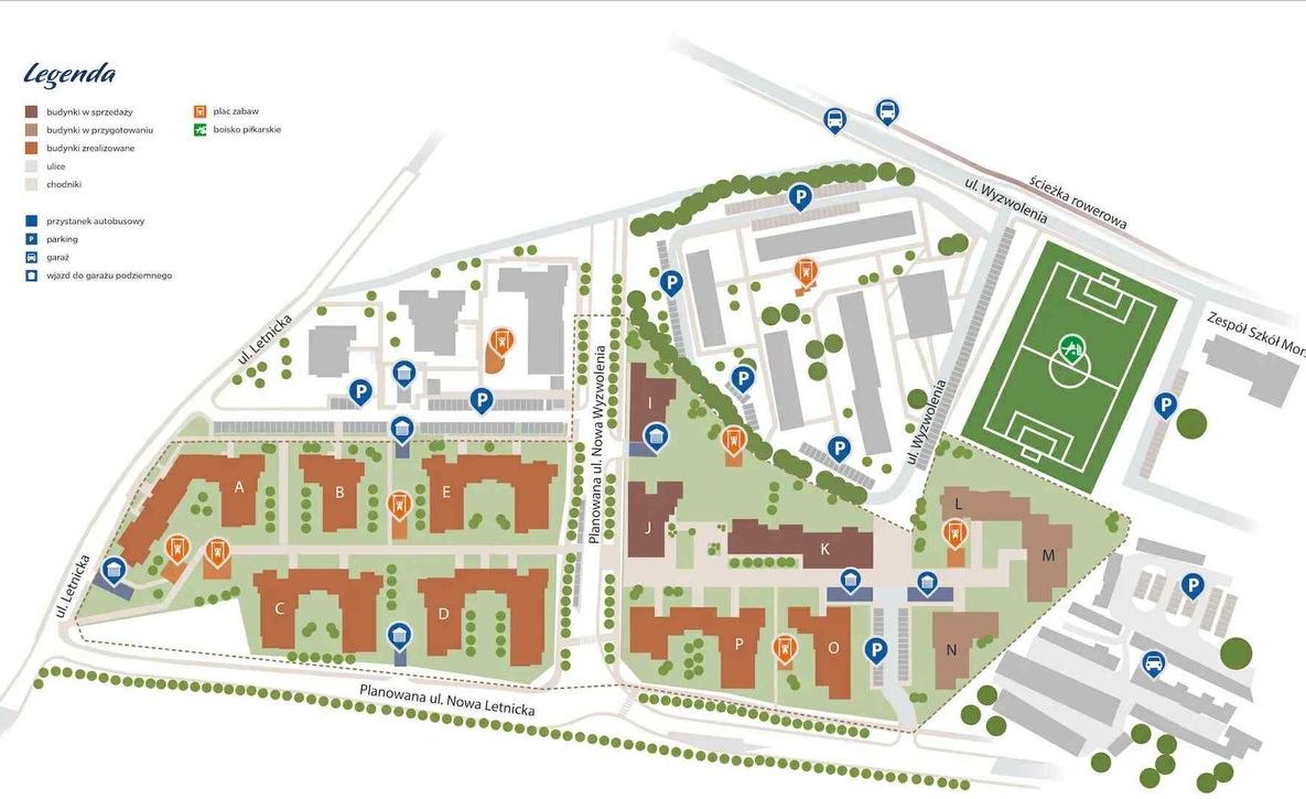 Jednym z największych atutów jest odległość ok. 600 m od morza, a także bardzo dobra komunikacja z całym Trójmiastem oraz szybki dojazd do dróg wylotowych i autostrady. Jest to niewątpliwie najbardziej prestiżowe osiedle na Letnicy oraz najbardziej pożądana lokalizacja.