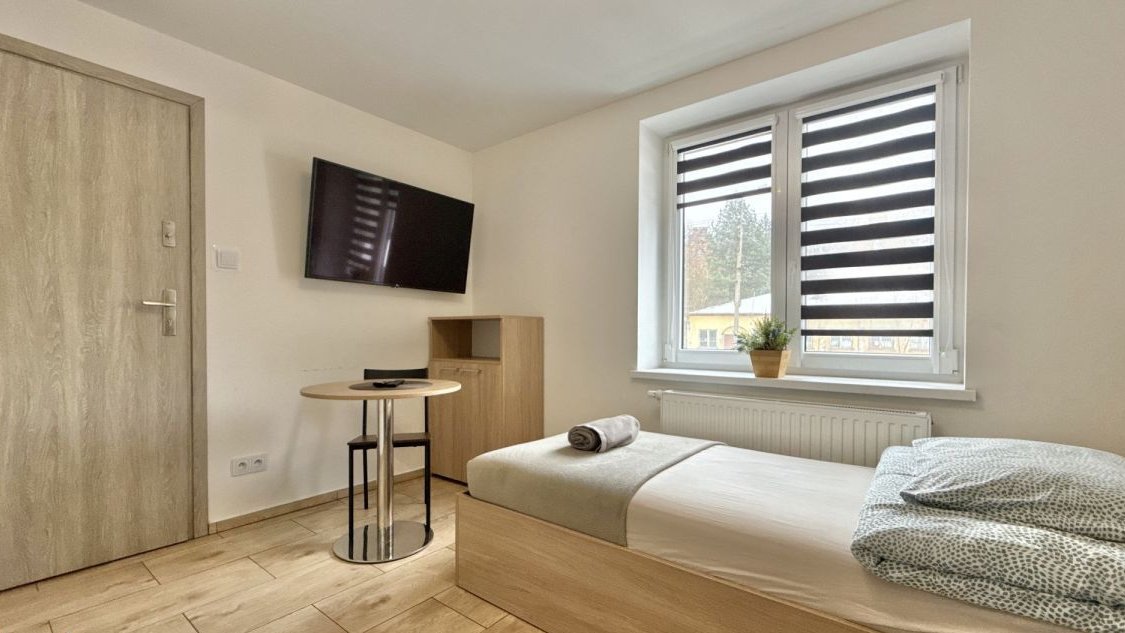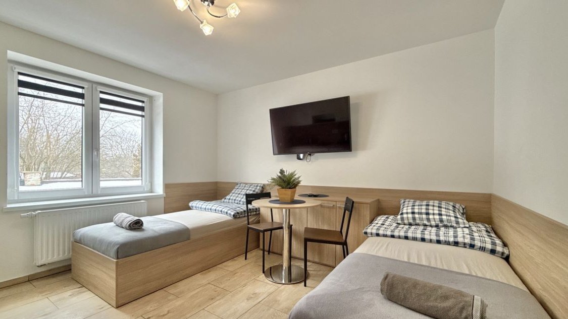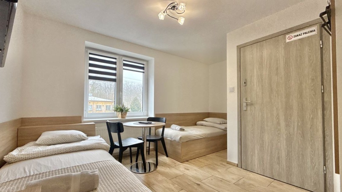 Układ: 4 pokoje dwuosobowe i 5 pokoi jednoosobowych.