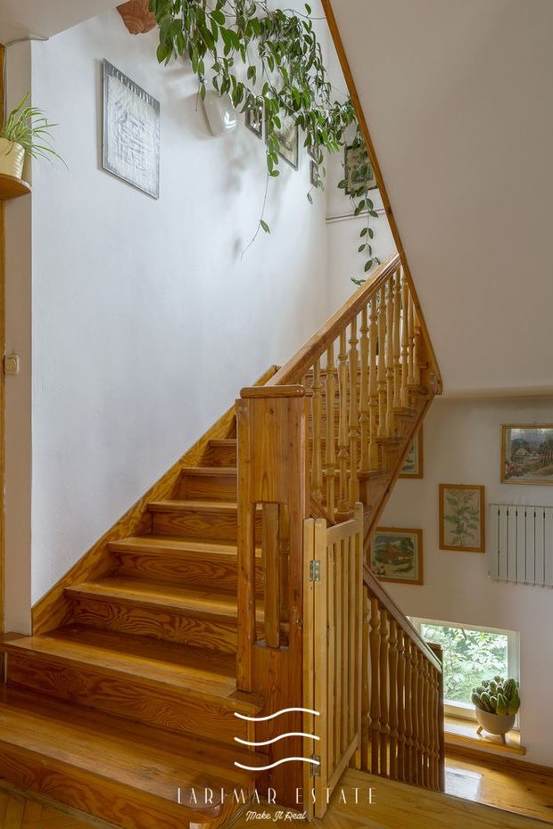 Zapraszam do zapoznania się z ofertą sprzedaży domu w Głoskowie koło Piaseczna położonego na pięknej działce o powierzchni 3800m2. Wyjątkowo atrakcyjne ukształtowanie terenu - działka w kształcie fortepianu graniczy z rzeczką, szkołą podstawową i drogą gminną. Mimo położenia w samym centrum miejscowości na działce jest cicho, Dom znajduje się po środku działki, nie słychać odgłosów z ulicy ani sąsiadów. Na działce jest dużo zieleni, piękny park, las i zadbany ogród. Na terenie posesji znajdują się dwa domy, dwa garaże, i dwa pomieszczenia gospodarcze. Do głównego domu na górce, w głębi działki prowadzi malownicza asfaltowa droga. Z przodu działki, przy bramie wjazdowej znajduje się pełen uroku, zadbany dom z czerwonej cegły o pow. 50 m2, stodoła pełniąca funkcję garażu i 30 m pomieszczenie gospodarcze. Przy bramie parking. W tych zabudowaniach można urządzić dowolną działalność gospodarczą. Obecnie stodoła pełni funkcję garażu. Dom był zamieszkały a na jego poddaszu zorganizowano warsztat stolarski.