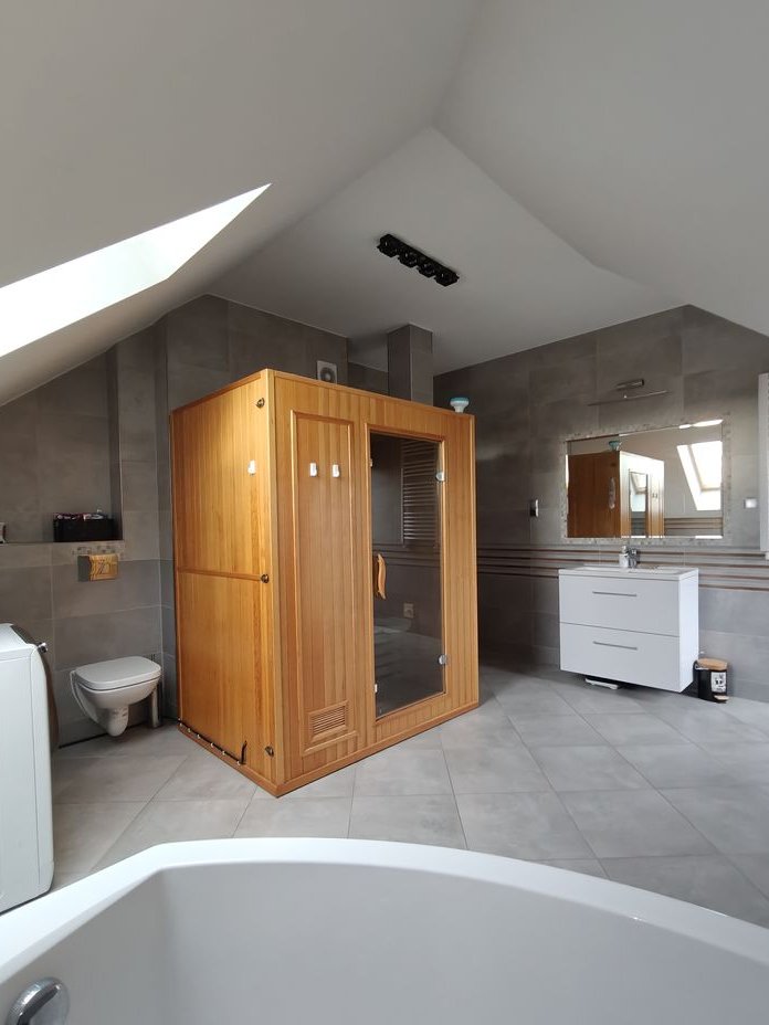 łazienka z dużą wanną i sauną,