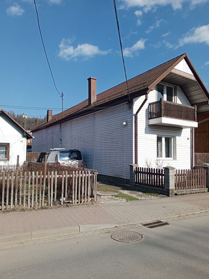 Dom murowano-drewniany przy bardzo ciekawej ulicy położonej wzdłuż Dunajca / na Zawodziu/. W charakterystycznej dla Krościenka zwartej zabudowie. Dom z lat 60 tych. Wszystkie media. Możliwy gaz . Około 65 ma na parterze drugie tyle na użytkowym poddaszu. Połowa powierzchni zabudowana, połowę stanowi ogród. Z tyłu domu zabudowania gospodarcze, co daje możliwość rozbudowy bez pozwoleń. Gotowy do zamieszkania, jednak wskazany remont. Możliwość zamiany na mieszkanie w Krakowie.