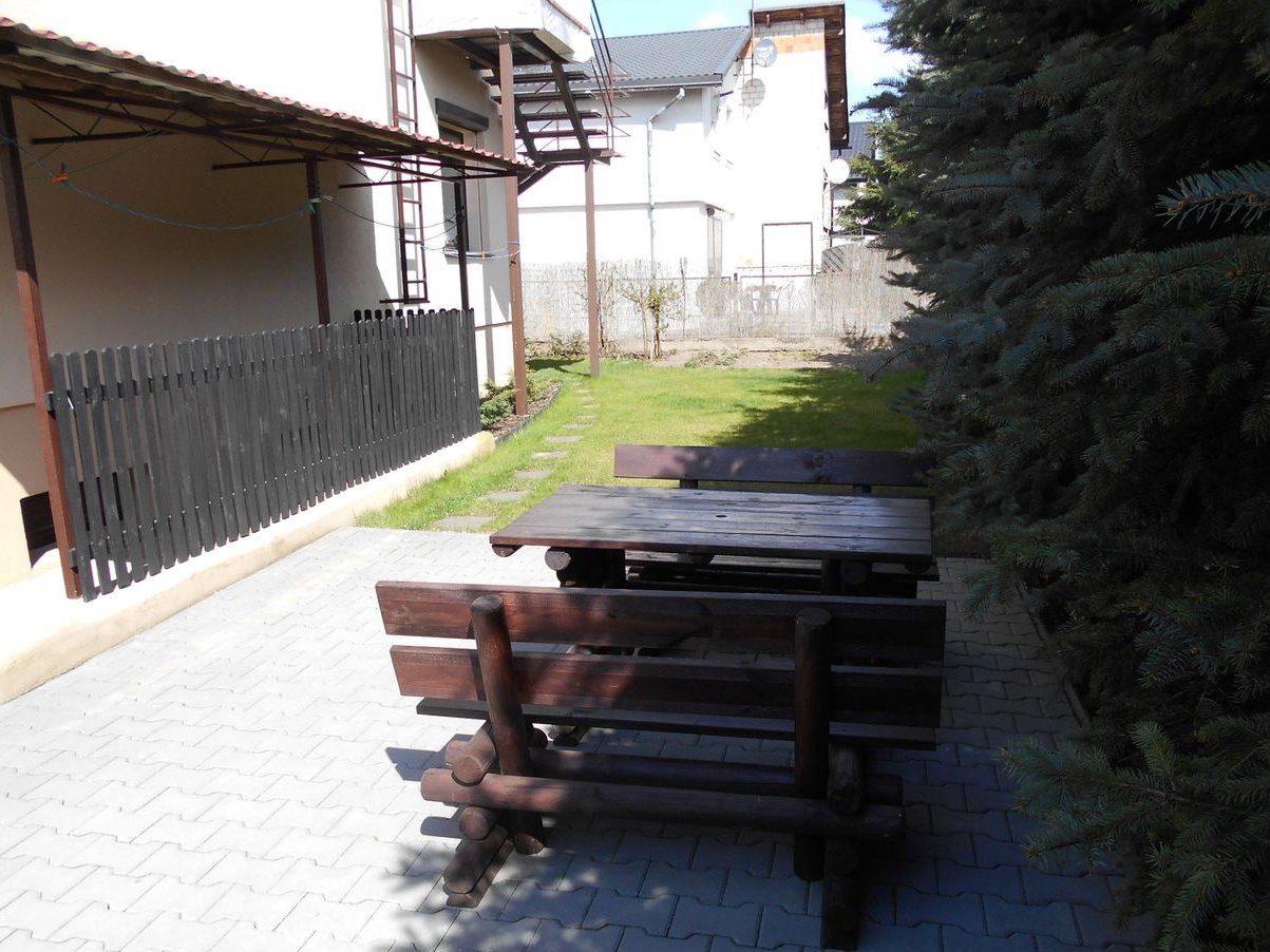 Na terenie posesji dodatkowo dwa blaszane garaże. Działka obsadzona szmaragdami i srebrnymi świerkami, ogrodzona kutym płotem z przodu z bramą na pilota. Balkony wyposażone są w nowe, kute barierki pasujące do płotu oraz posadzki typu kamienny dywan. Duża część działki jest wyłożona kostką brukową. Dom posiada panele fotowoltaiczne, rozliczanie na starych zasadach. Dodatkowo zamontowany jest uzdatniacz wody.