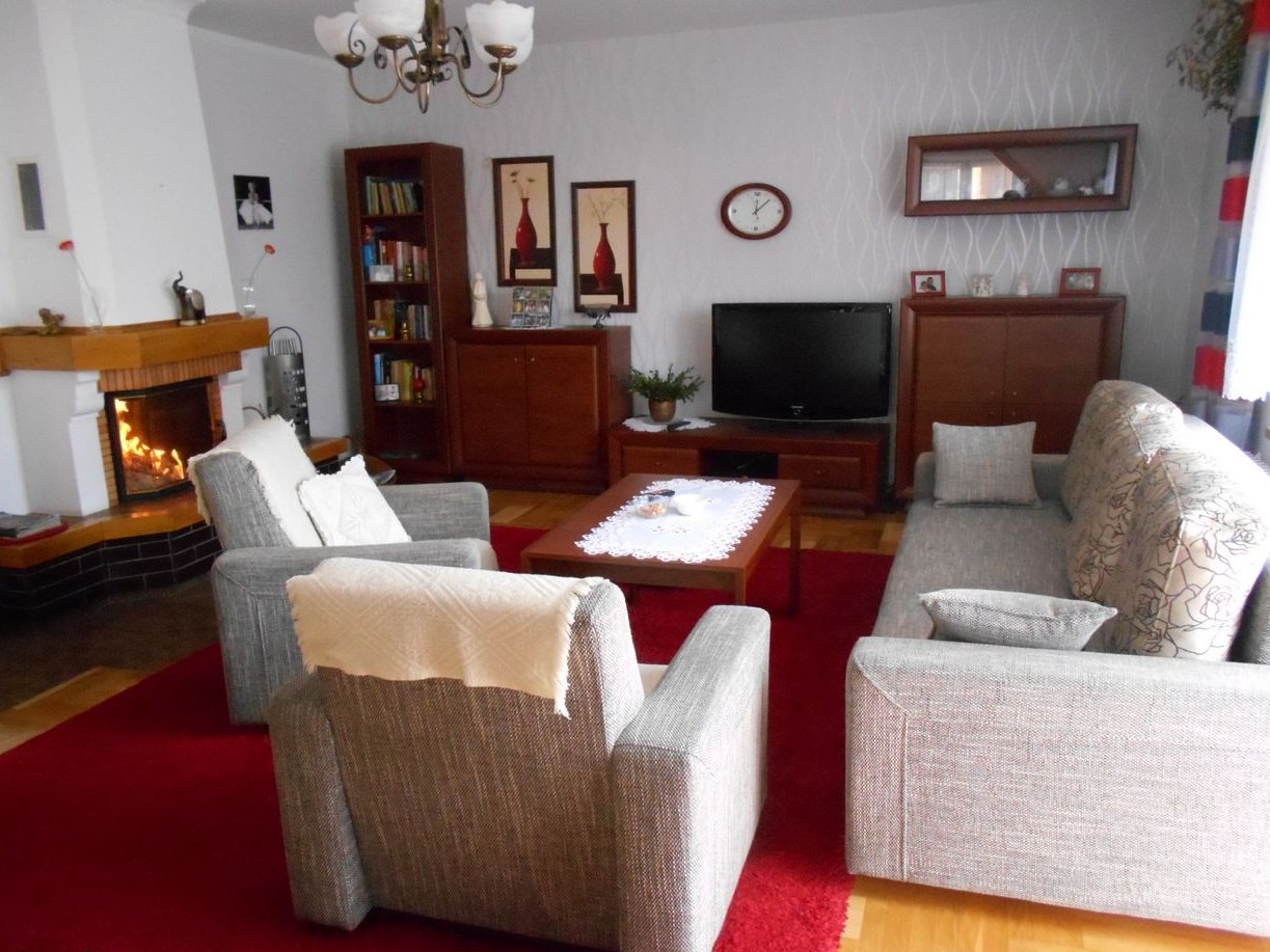 Na piętrze znajdują się trzy pokoje, kuchnia, łazienka oraz toaleta. Poddasze składa się z dwóch pokoi, aneksu kuchennego i łazienki.