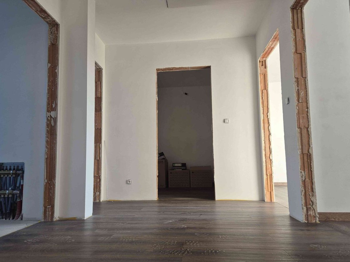 Posadzki parteru ułożona ceramika,pietro panele podlogowe,zamontowane dzwi wewnętrzne , wykończone lazienki