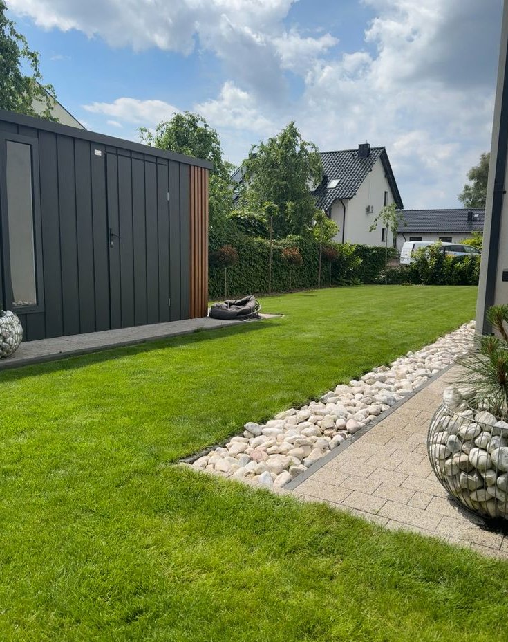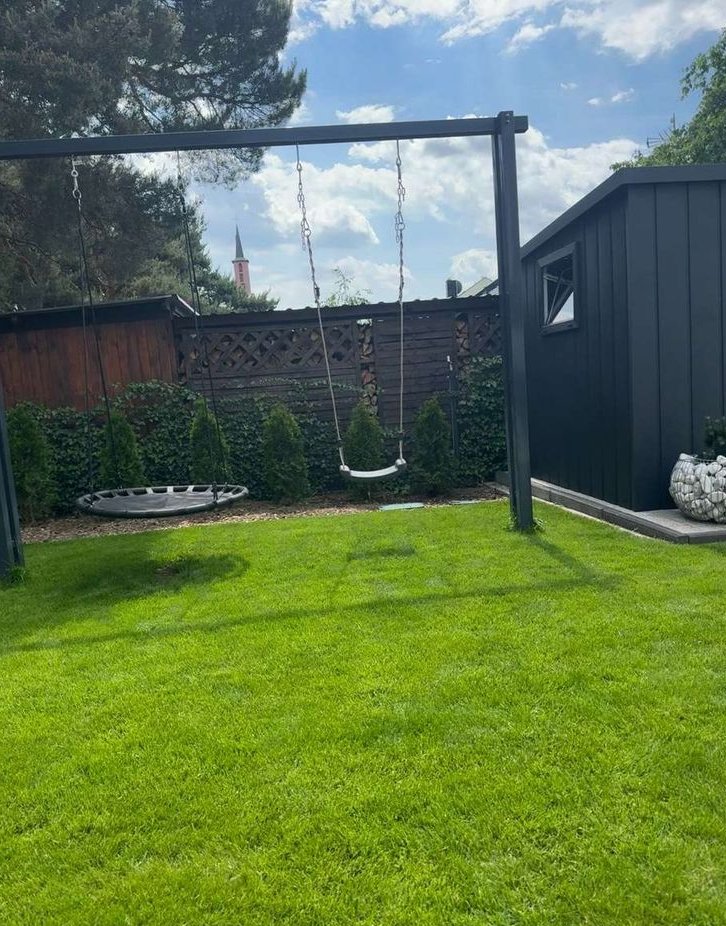 Kolejnym atutem nieruchomości jest ogród, idealny do wypoczynku, wyposażony w system automatycznego nawadniania – osobno rabaty oraz trawnik (niezależne ujęcie wody – studnia głębinowa, co zapewnia wygodę oraz niższe koszty utrzymania).