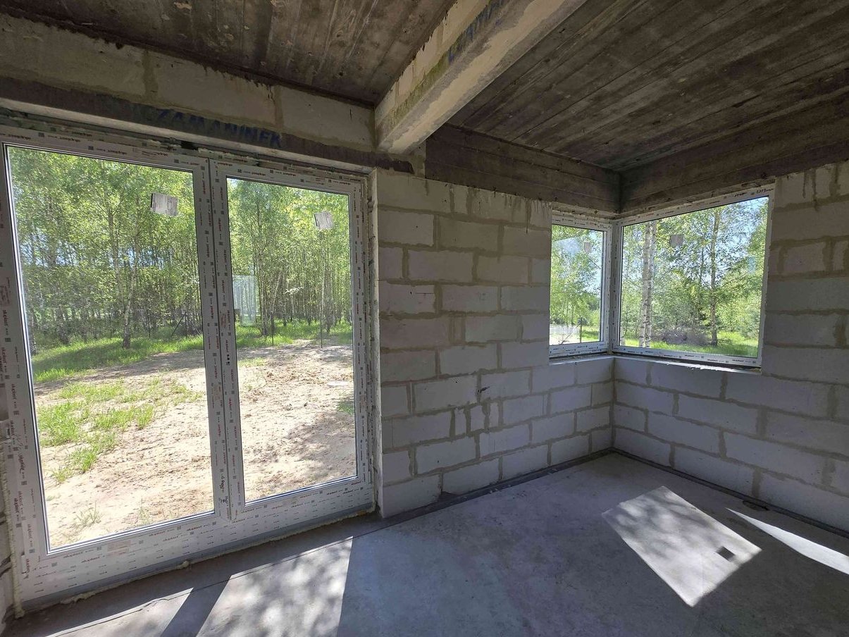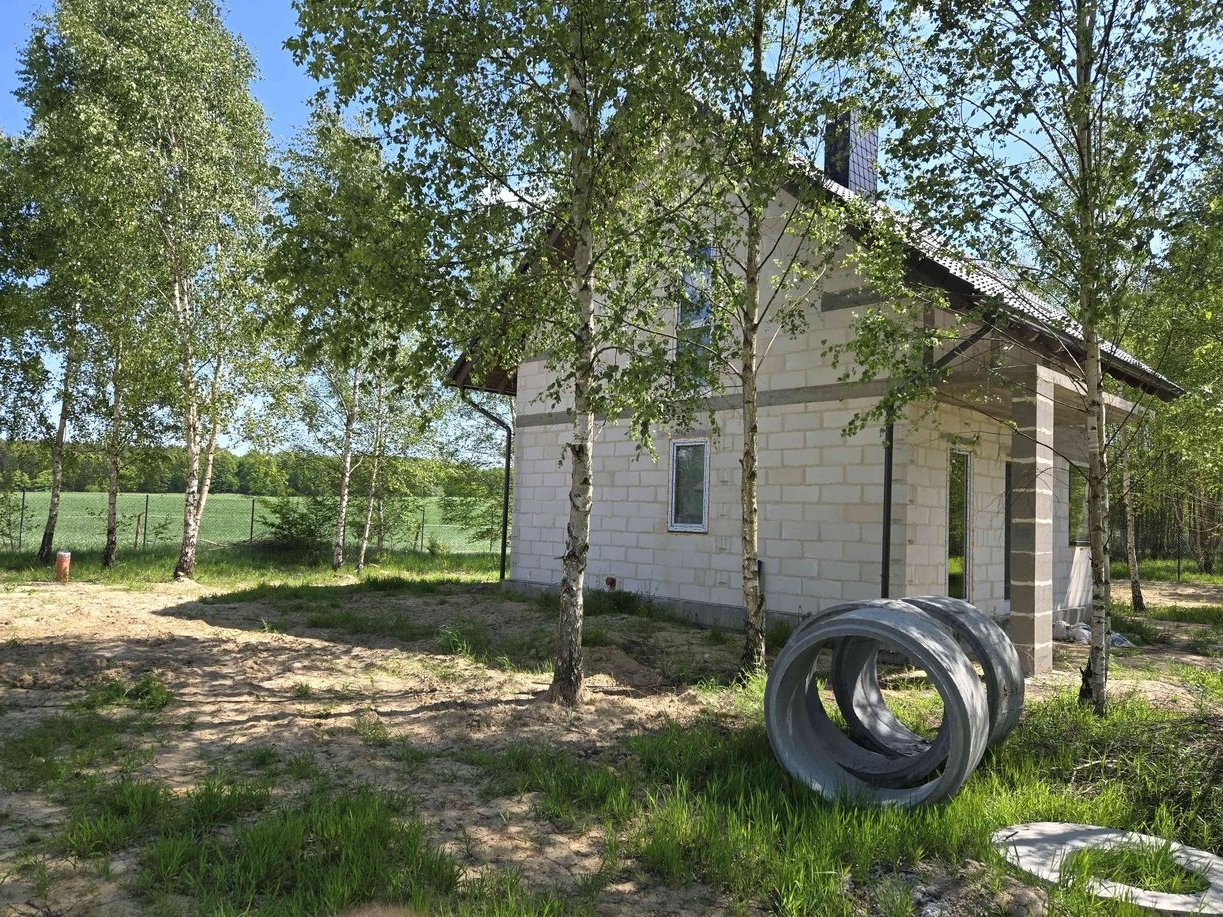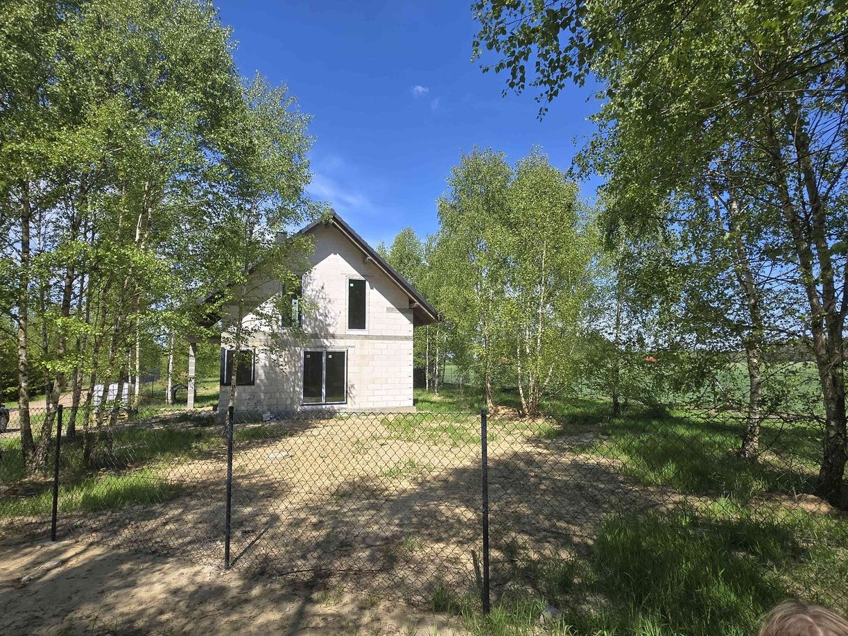 Stan - surowy zamknięty. Woda przyłączona z wlasnej studni glębinowej usytuowanej na dzialce. Przyłącze kanalizacyjne od budynku do zbiornika bezodpływowego na ścieki o poj 9 metrow sześciennych. Przyłącze energetyczne do budynku. Światłowód Orange w realizacji. Możliwość wykończenia domu do stanu pod klucz. Zapraszam do kontaktu. Cena do negocjacji.