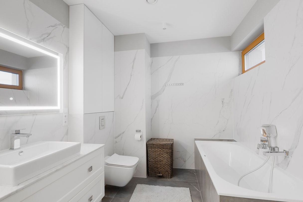 Dom oddany do użytku w 2020 roku. Budynek budowany był dla siebie, więc nie było mowy o oszczędzaniu na materiałach użytych do budowy czy wykończenia wnętrza.