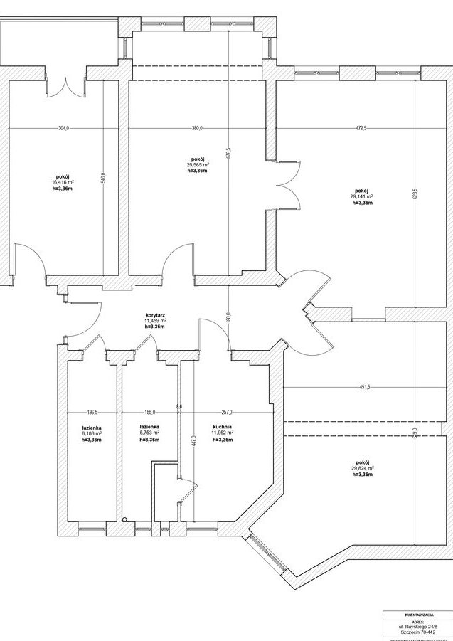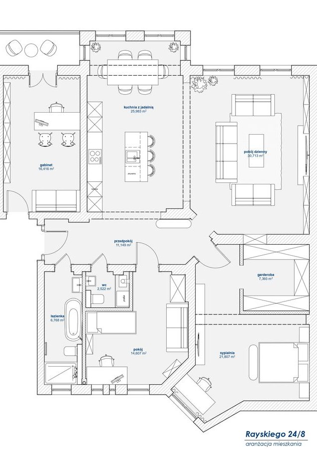 Na ww. powierzchnię składają się: 4 pokoje, kuchnia, dwie łazienki, korytarz. W załączeniu, na jednym ze zdjęć rzut mieszkania oraz koncepcja jego aranżacji.