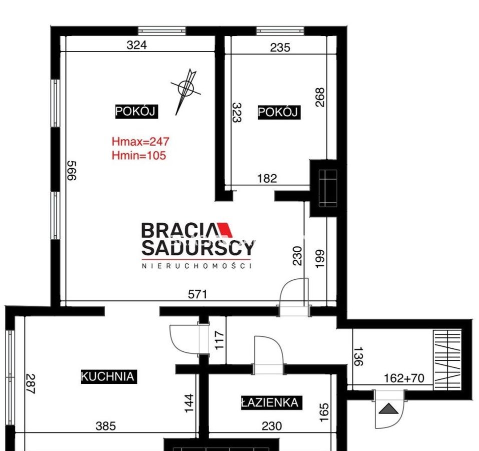33,3 m² użytkowe, ale około 50 m² po podłodze dzięki czemu w rzeczywistości mieszkanie jest przestronne i wygodne w codziennym użytkowaniu