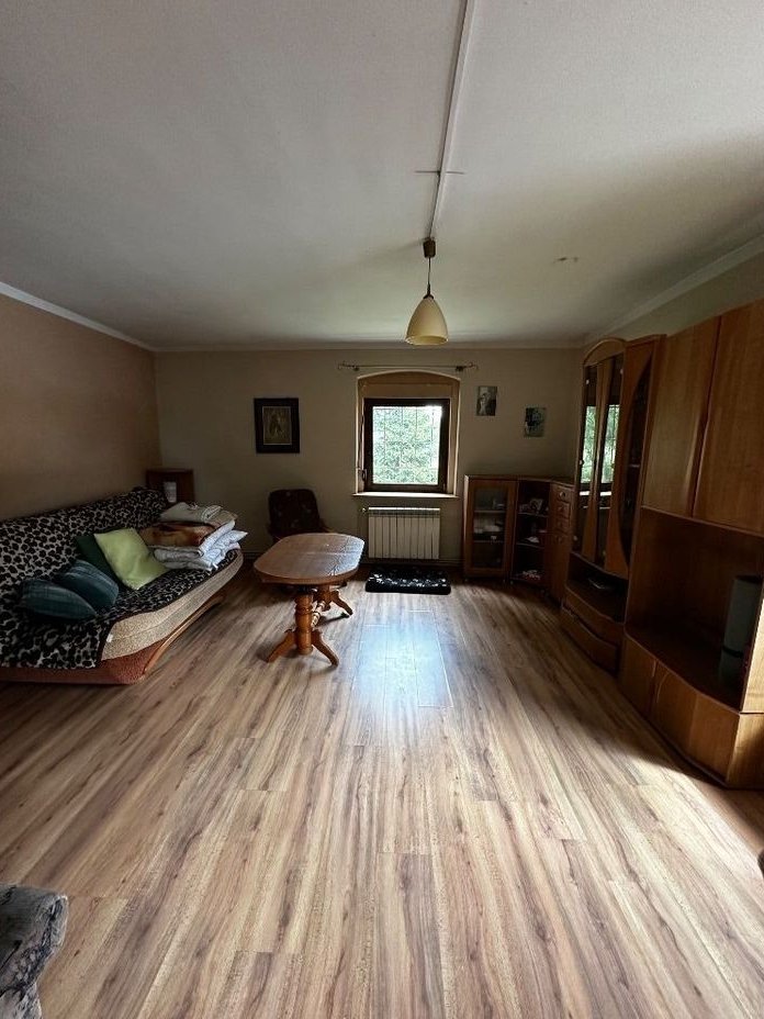 Dom był wykorzystywany jako letniskowy, co sprawia, że jest idealny zarówno do zamieszkania całorocznego, jak i na weekendowy wypoczynek. Wnętrze obejmuje: