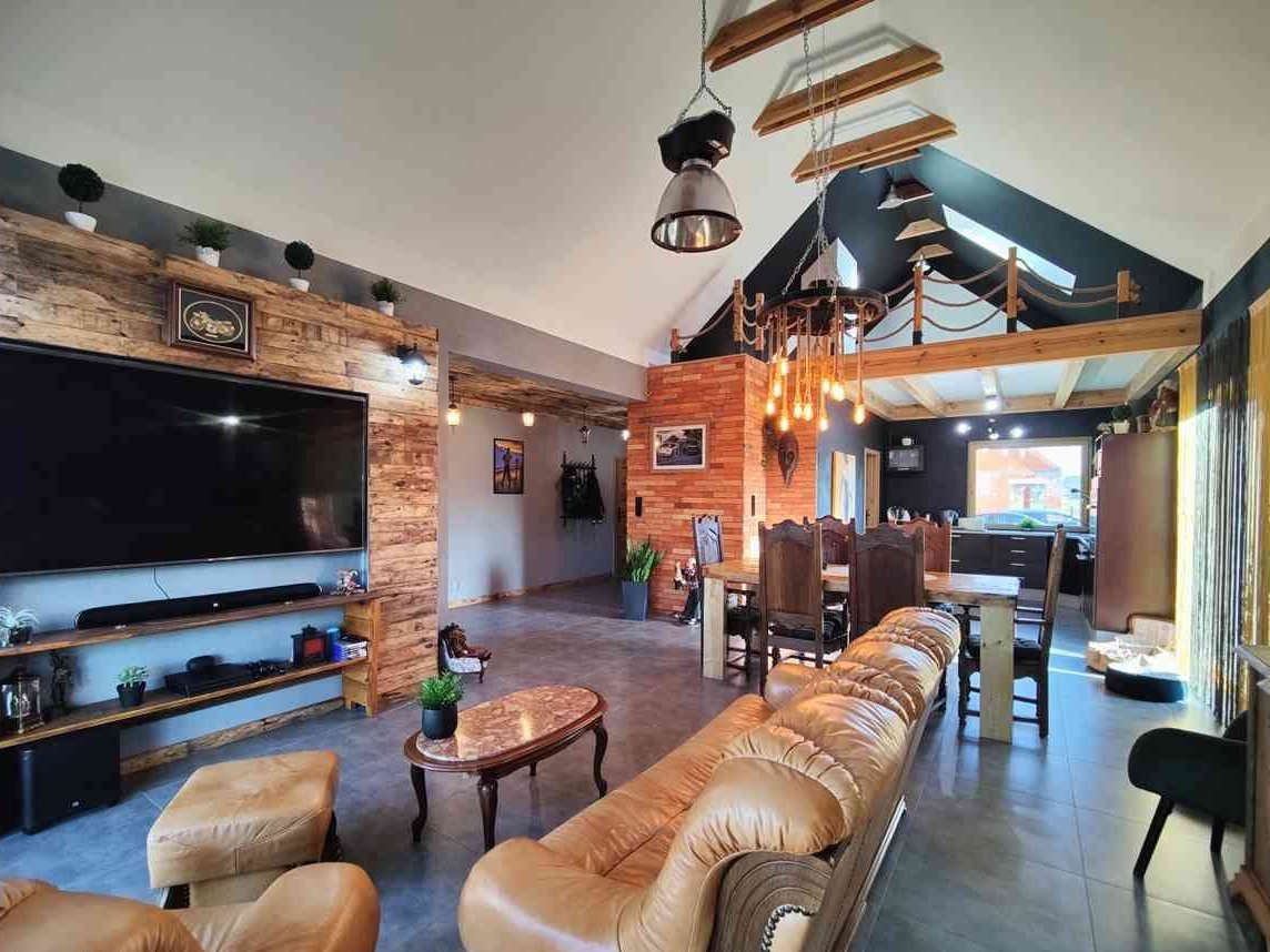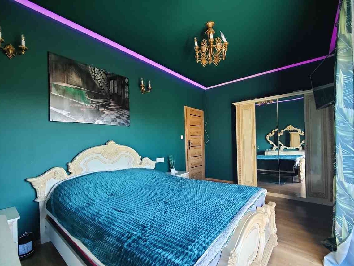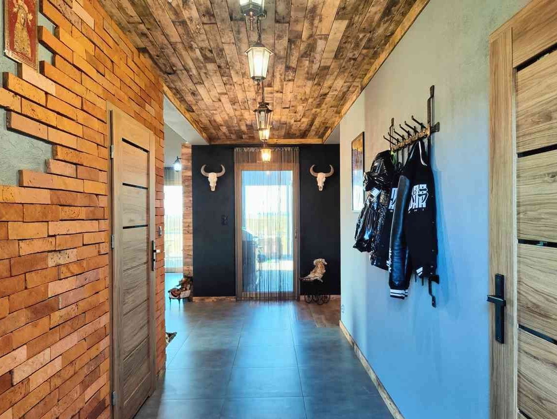 Dom jest bardzo przestrzenny a jego wystroju jest bardzo przytulny w środku, został samemu cały zaprojektowany oraz zrobiony oświetlenie Leed w łazienkach sypialni oraz salonie