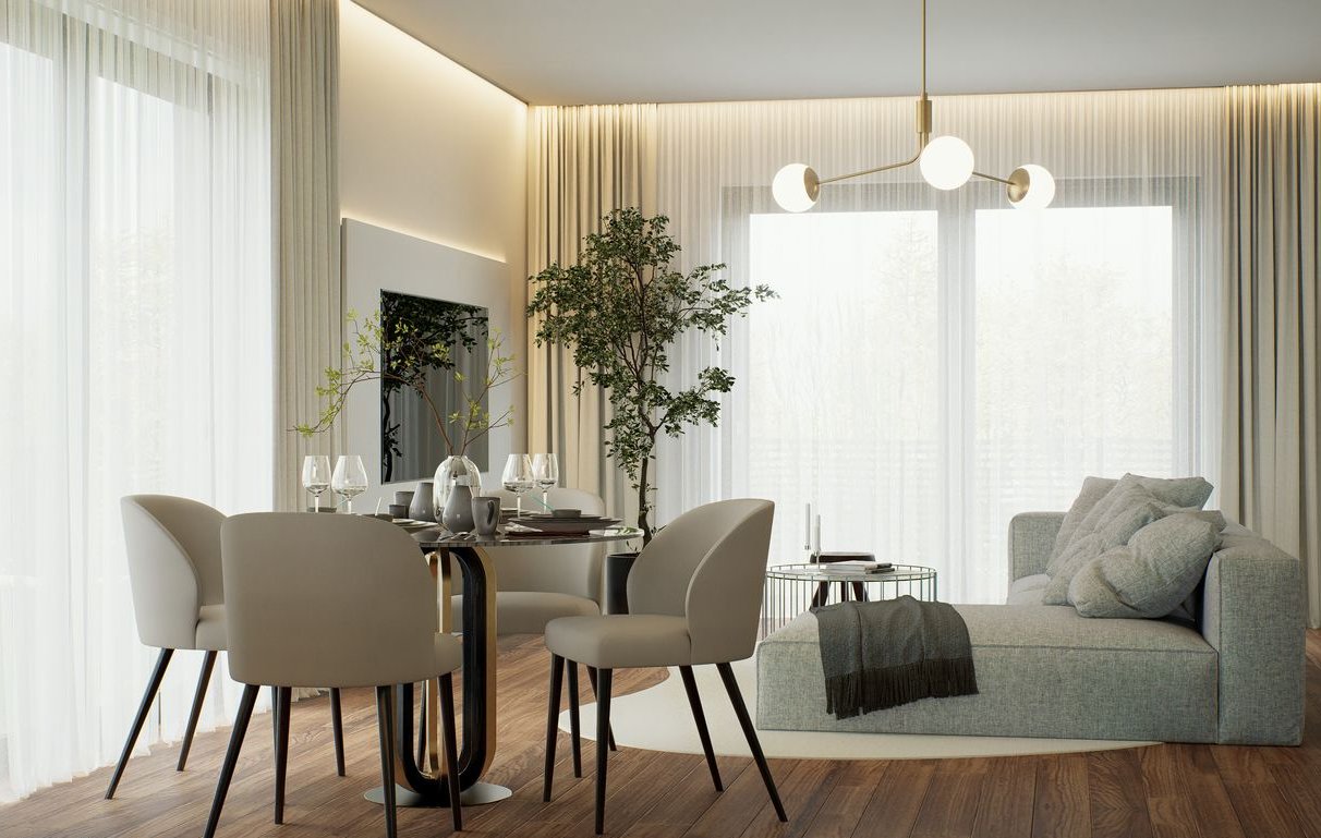 Wszystkie domy zewnętrznie zachowają jednolity charakter osiedla, czyli kremową kolorystykę elewacji, ozdobną deskę i ramy okien na zewnątrz w kolorze Winchester, kolorystykę i charakter dachów oraz ogrodzenia działek.