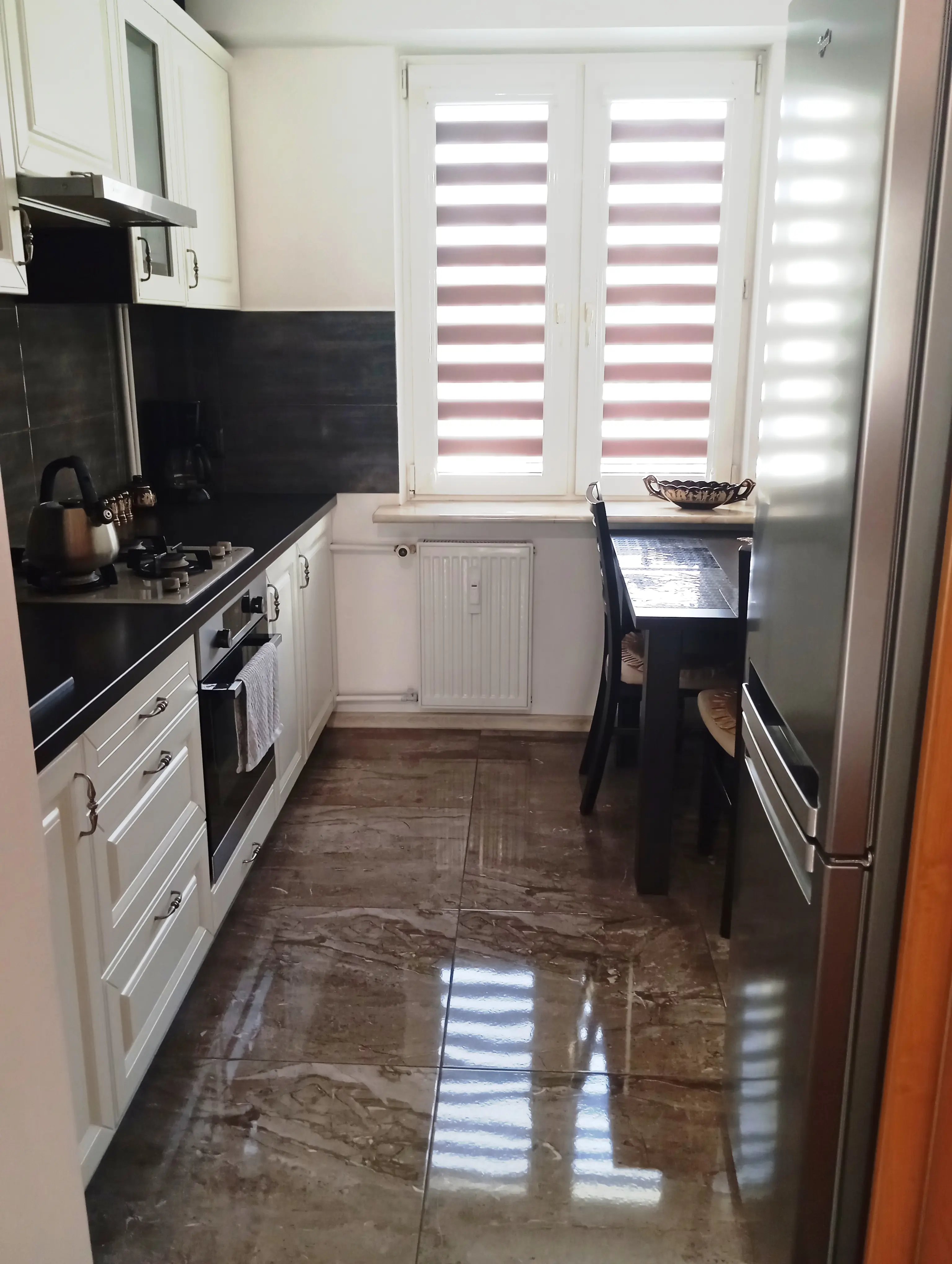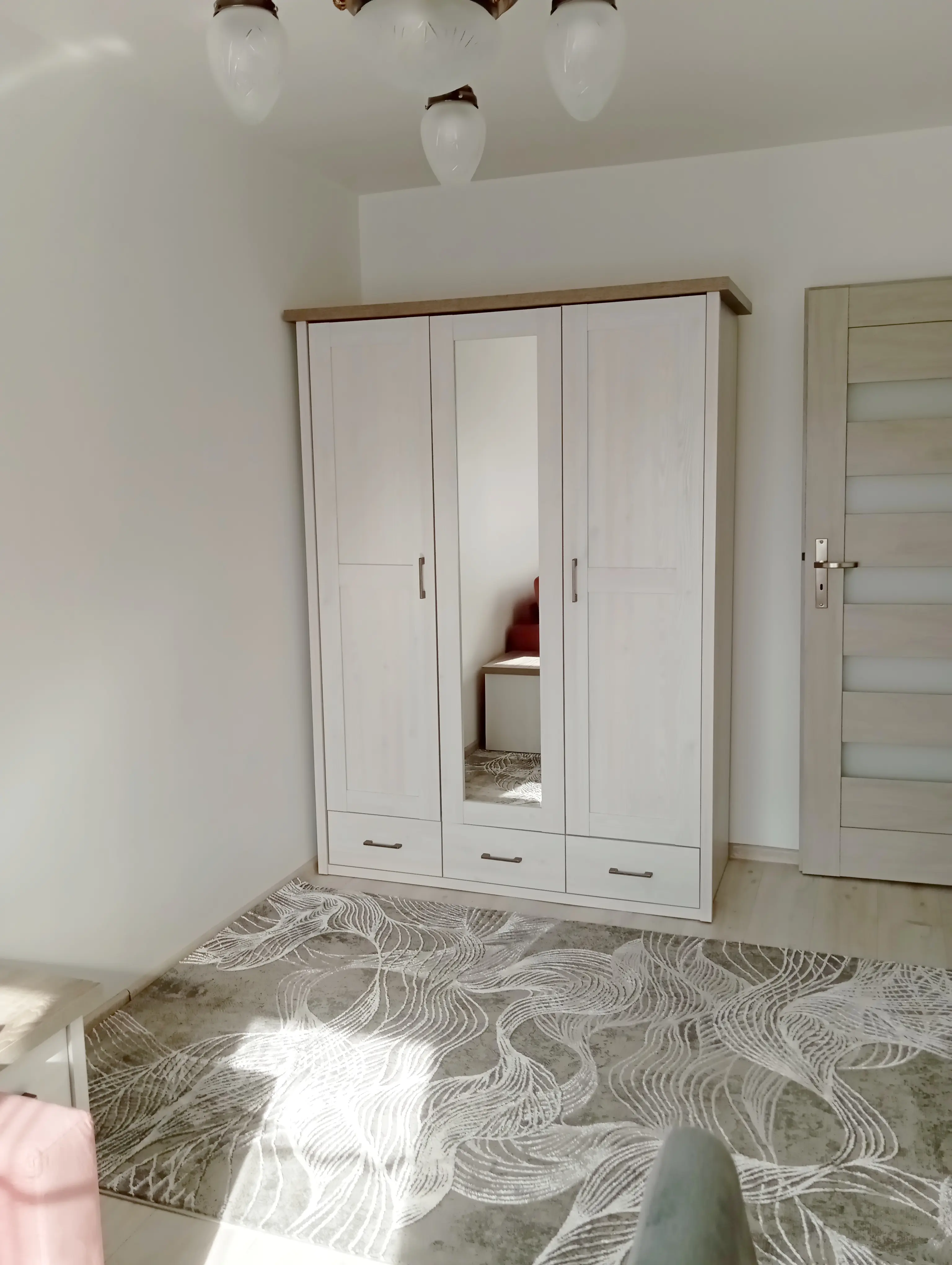 Nieruchomość przeszła generalny remont i została wykończona w wysokim standardzie. W kuchni znajdują się solidne, drewniane meble, które nadają wnętrzu elegancji i ponadczasowego charakteru. W przedpokoju zamontowano praktyczną, pojemną szafę w zabudowie, zapewniającą wygodne miejsce do przechowywania.
