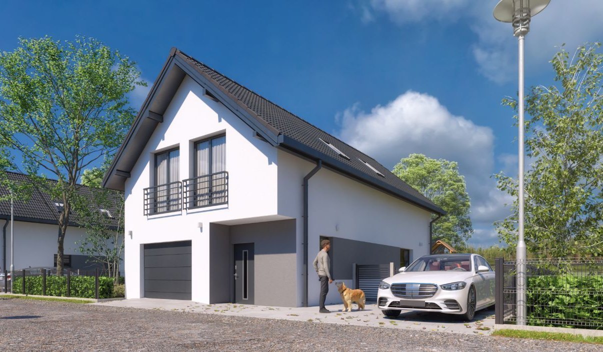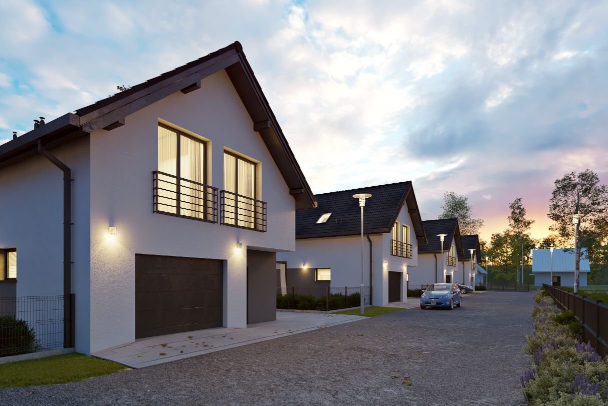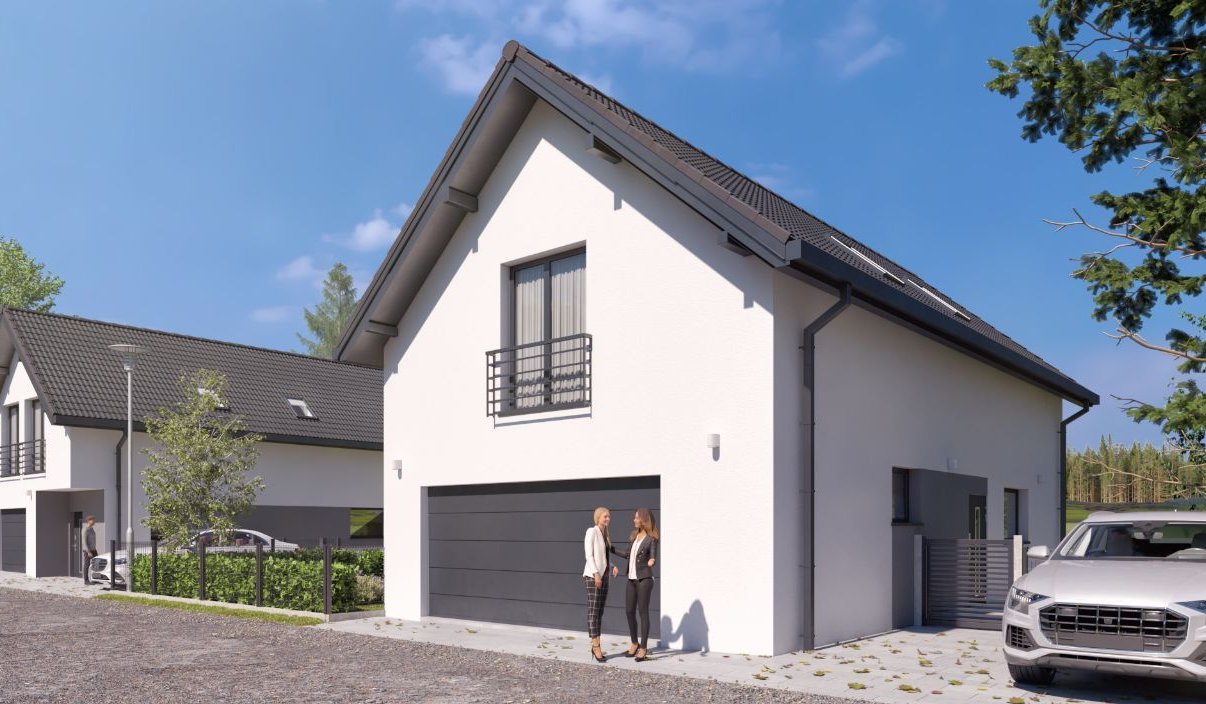 Budynki wykończone będą w pełnym standardzie deweloperskim, z elewacją i ogrodzeniem.