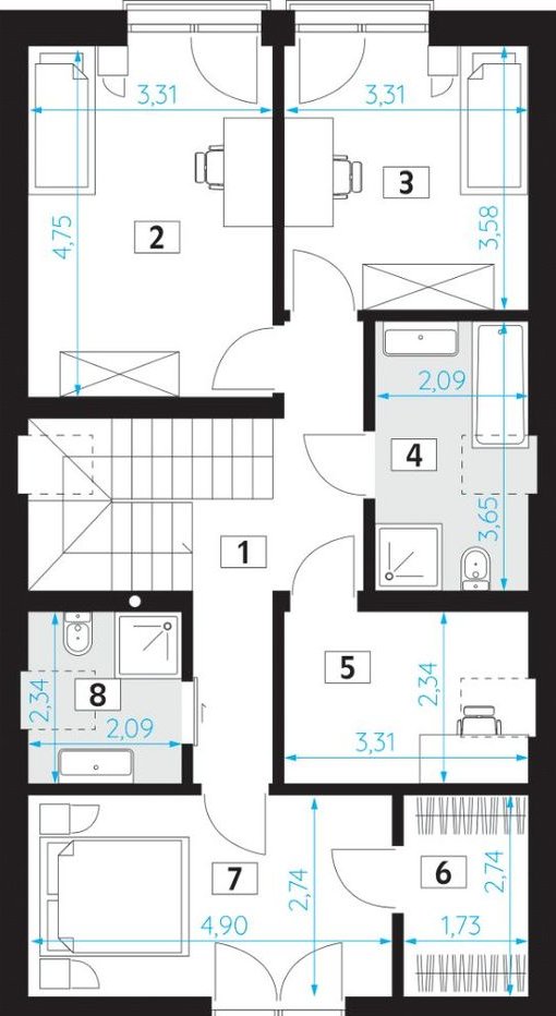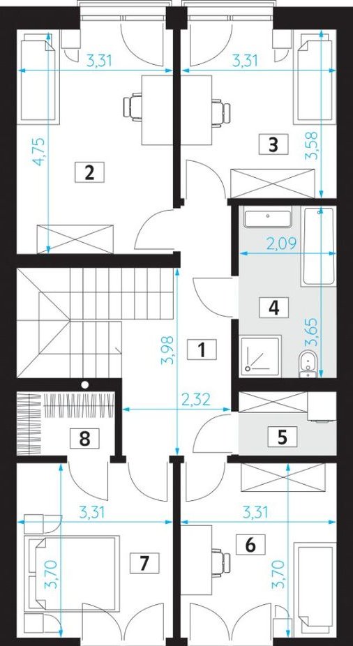 Każdy z domów charakteryzuje przemyślany układ wnętrz, mający na celu zapewnić maksymalną wygodę i funkcjonalność przyszłych mieszkańców. Zastosowanie wysokiej jakości izolacji termicznej, nowoczesnych okien i systemu ogrzewania wpływa z kolei na wysoką klasę energetyczną budynku, co przekłada się na efektywne wykorzystanie energii i dużo niższe koszty użytkowania i eksploatacji.