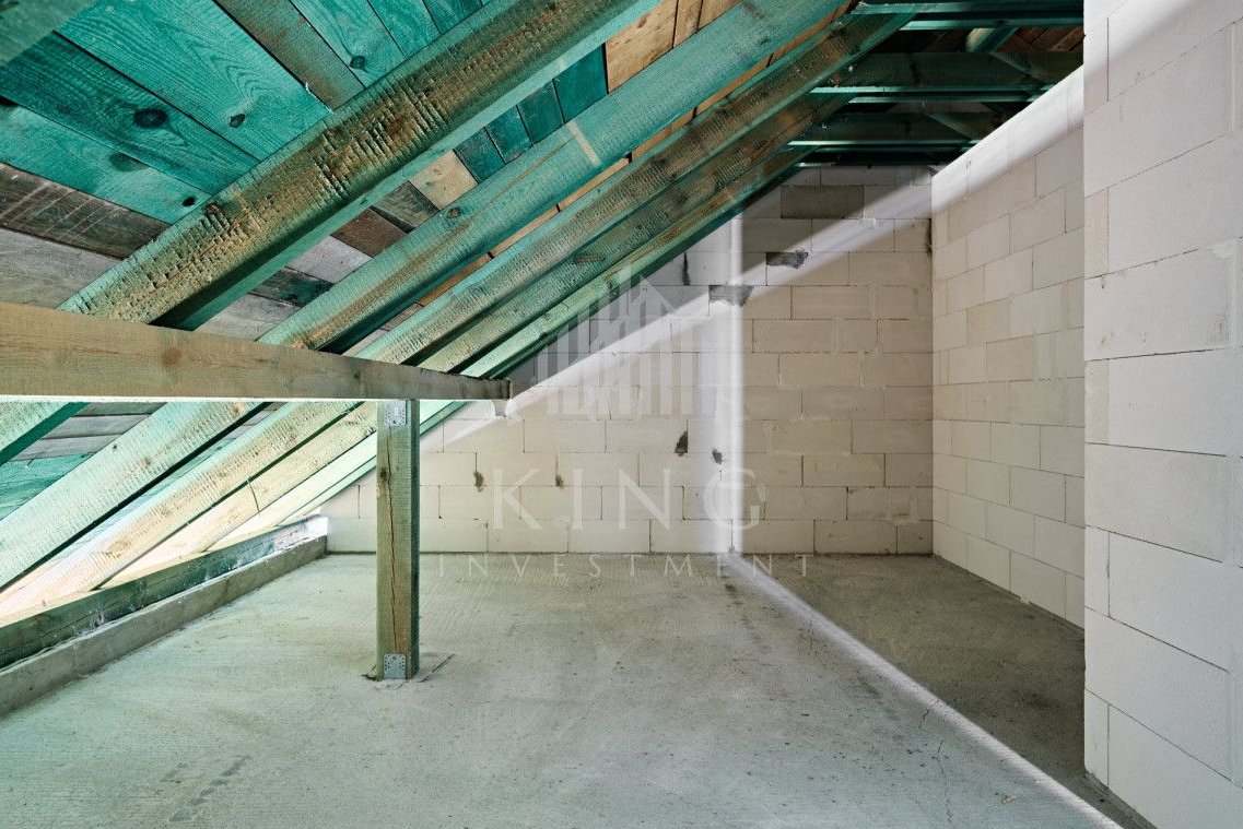 Na sprzedaż dom jednorodzinny według projektu „Kinga C” w stanie surowym zamkniętym, posadowiony na dużej działce o powierzchni 1314 m². Budynek wolnostojący z wykonaną piwnicą oraz dachem, z ogromnym potencjałem aranżacyjnym - idealny dla osób, które chcą wykończyć dom według własnych potrzeb i standardu.