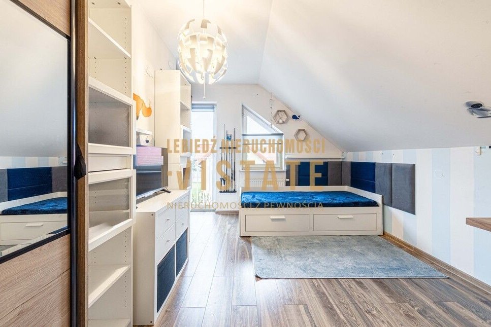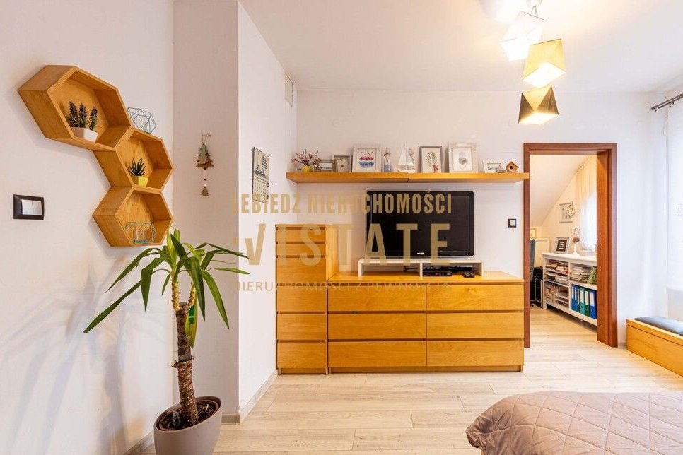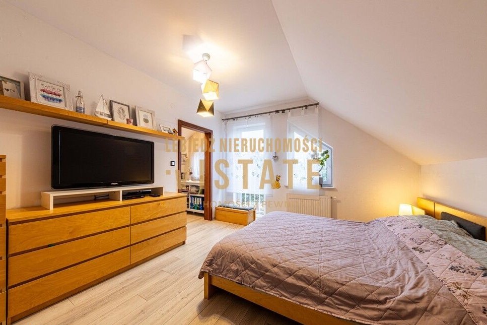 Poddasze: Strefa prywatna obejmująca dwie komfortowe sypialnie (w tym jedna z dedykowaną garderobą) oraz duża, rodzinna łazienka.
