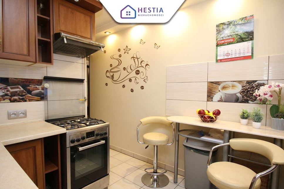 Gotowe do wprowadzenia: W cenie pozostają meble kuchenne oraz pojemna szafa w zabudowie w przedpokoju.