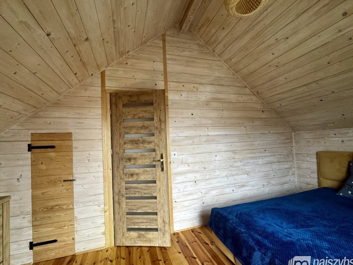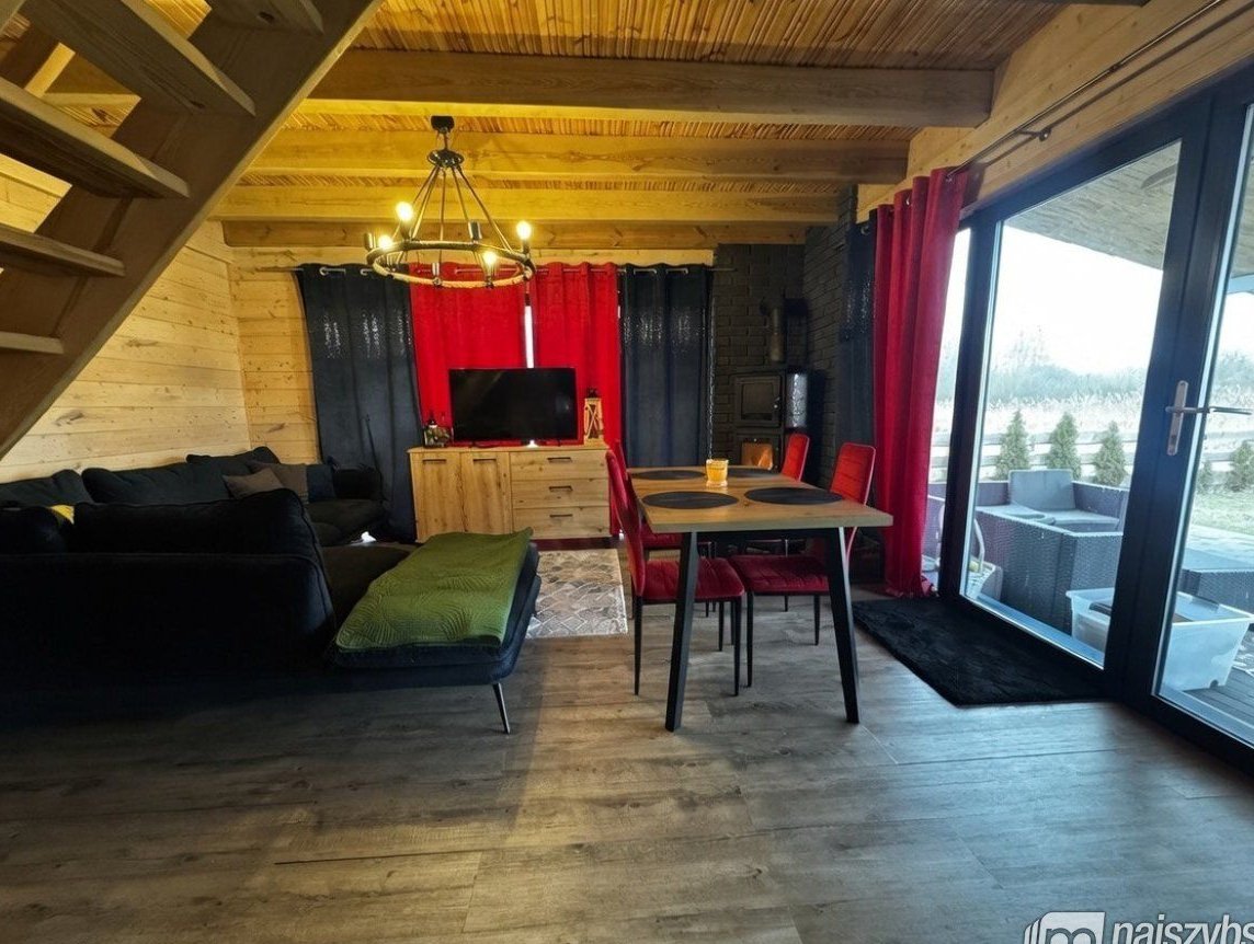 Oferujemy na sprzedaż urokliwy, w pełni wyposażony drewniany domek o powierzchni 70 m2, wybudowany w 2023 roku, usytuowany na przestronnej działce rekreacyjnej o powierzchni 1078 m2, zaledwie kilka kroków od jeziora w malowniczym Strzeszowie.