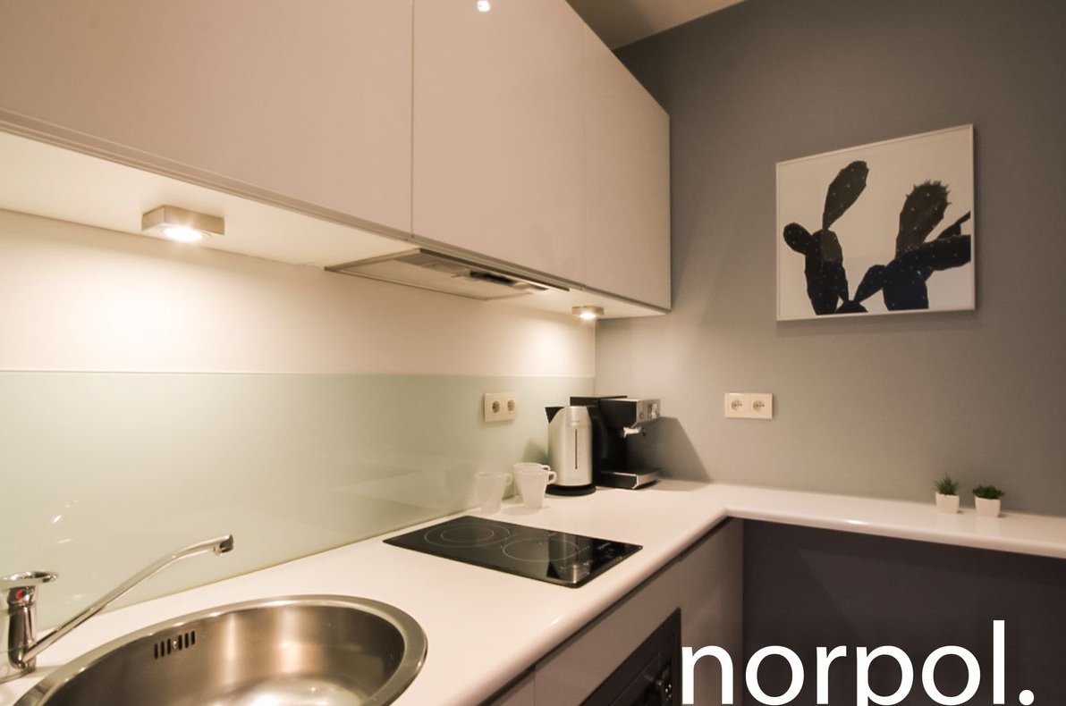 Mieszkanie składa się z jasnego pokoju dziennego połączonego z w pełni wyposażonym aneksem kuchennym, funkcjonalnej łazienki oraz przedpokoju. Apartament jest kompletnie umeblowany i wykończony, wyposażony w klimatyzację – gotowy do zamieszkania lub jako inwestycja pod wynajem.