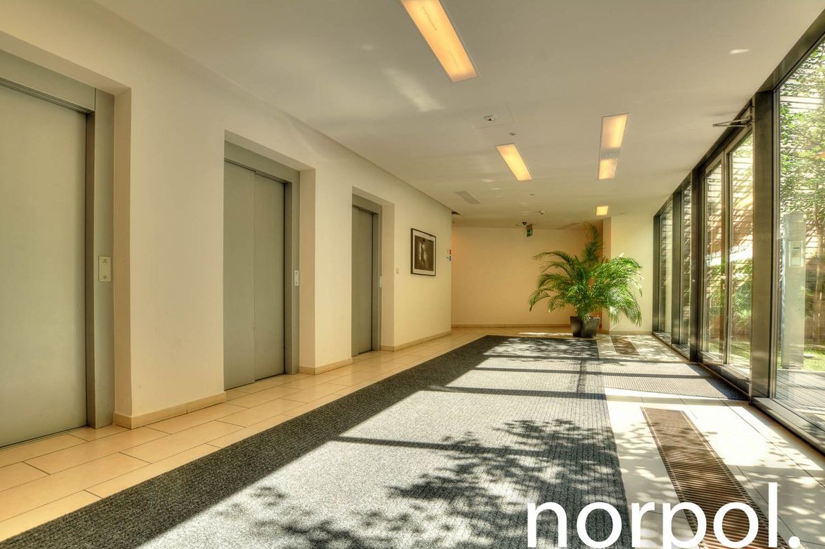 Przytulne studio o powierzchni 28,38 m² usytuowane jest na 1. piętrze eleganckiego apartamentowca z całodobową ochroną i monitoringiem. Do dyspozycji mieszkańców pozostaje reprezentacyjne lobby z recepcją, szybkie windy, zielone patio oraz garaż podziemny.