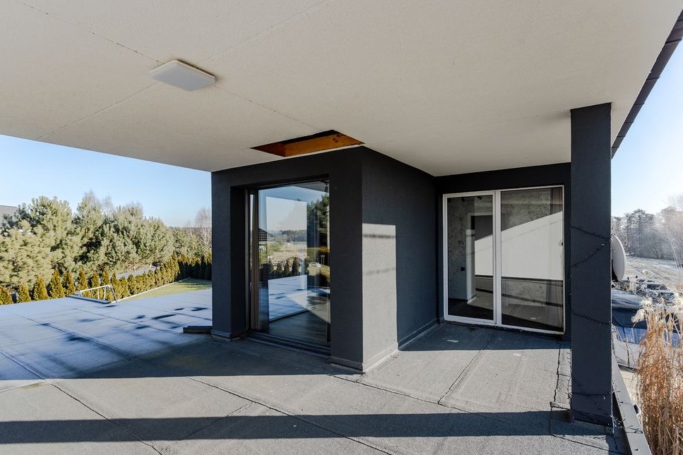 Taras górny (ok. 140 m2) – częściowo zadaszony, z widokiem na las i pola