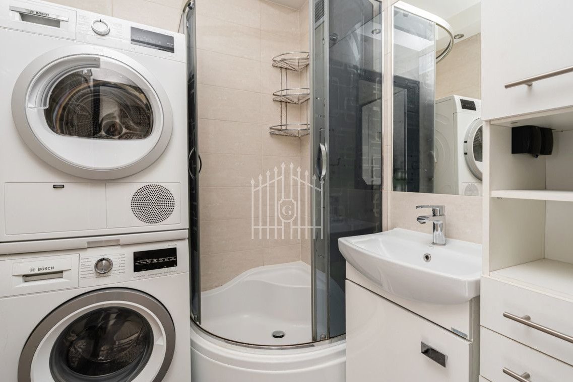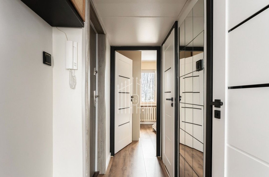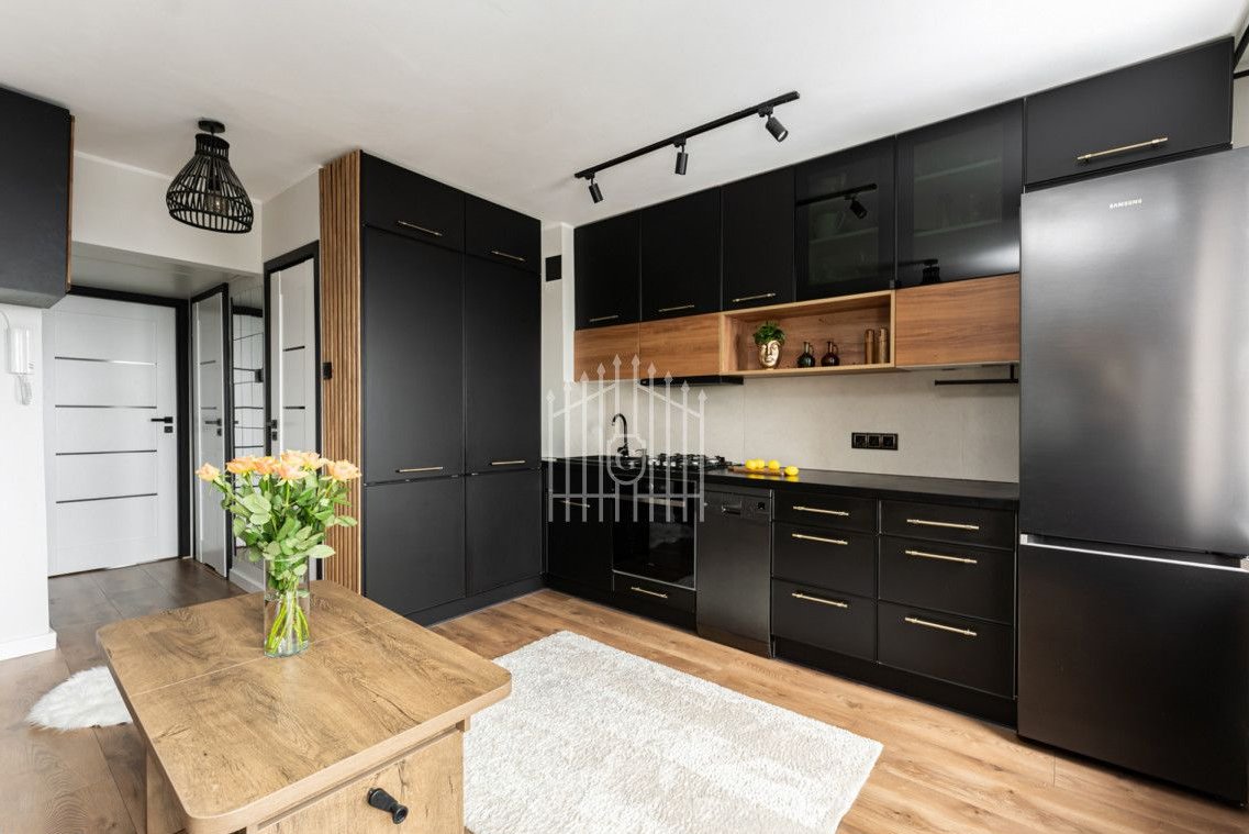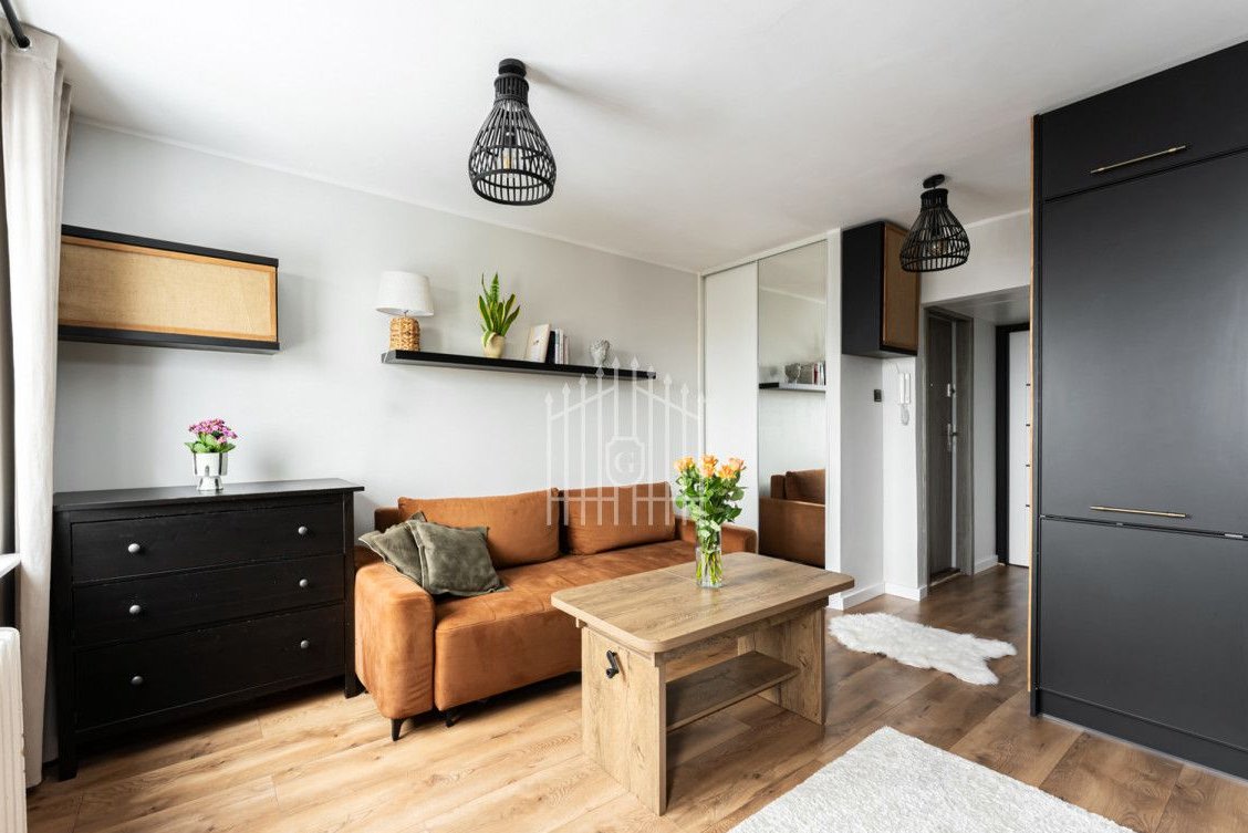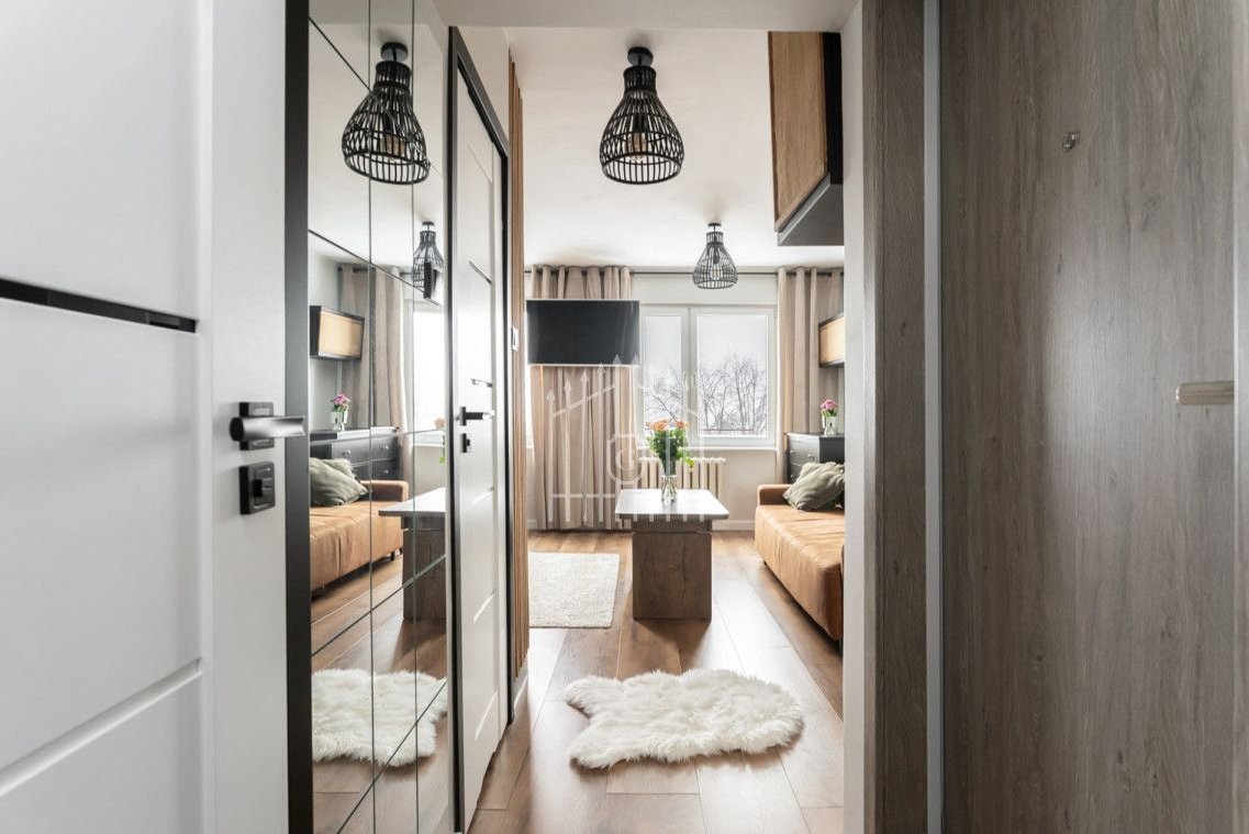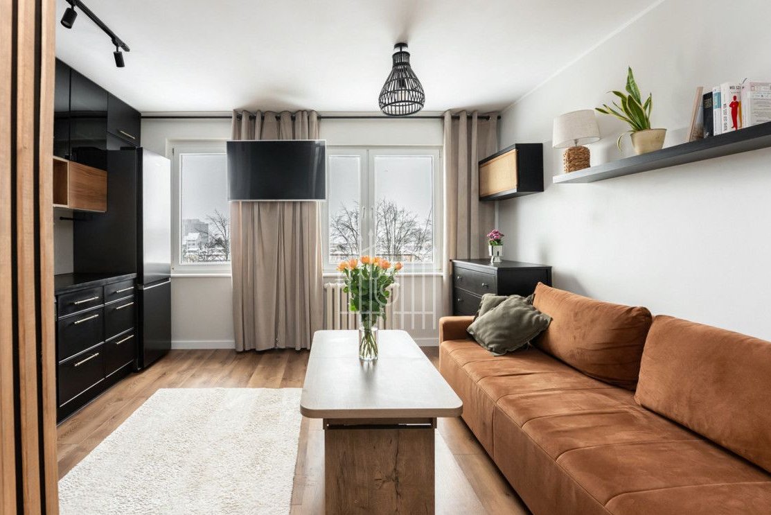 Mieszkanie składa się z salonu z aneksem kuchennym i ekspozycją południową, co sprawia, że część dzienna jest słoneczna i przytulna przez większą część dnia. Aneks kuchenny wykonano w zabudowie na wymiar i wyposażono w nowe sprzęty AGD. Sypialnia jest ustawna i posiada dużą, pojemną szafę, a łazienka i osobne WC zostały odnowione i nowocześnie wykończone, na całej powierzchni zaprojektowano funkcjonalne przestrzenie do przechowywania, dzięki czemu każdy metr mieszkania jest optymalnie wykorzystany. Dwustronna ekspozycja północ-południe zapewnia bardzo dobre doświetlenie oraz naturalną wentylację. Istnieje również możliwość dobudowy balkonu, a do mieszkania przynależy piwnica 2,40 m².