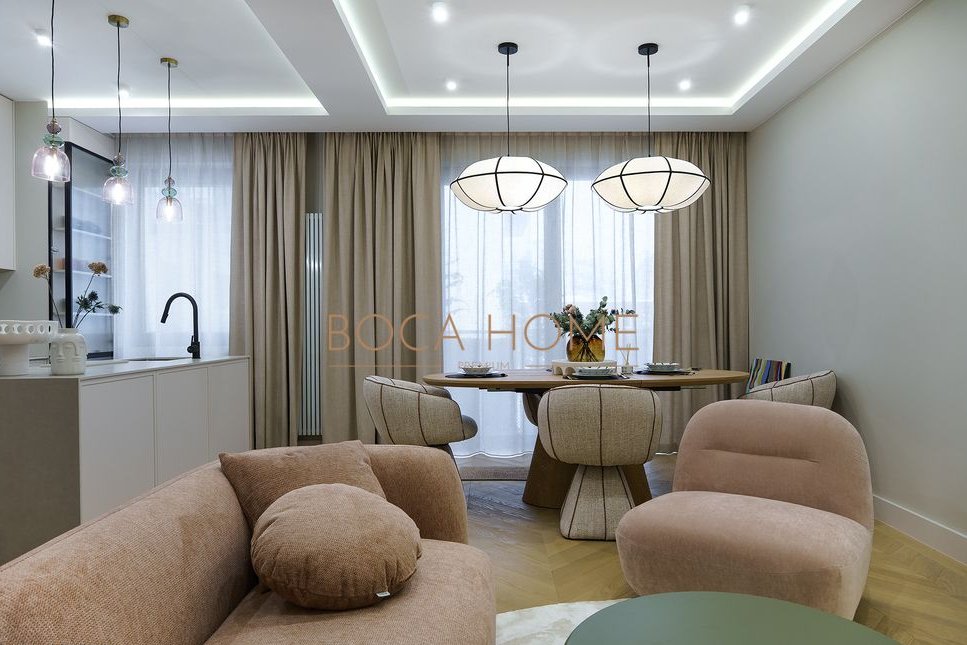 Mieszkanie jest wykończone w bardzo dobrym standardzie, z dbałością o detale, ergonomiczne rozmieszczenie przestrzeni i jakość materiałów. Duże okna zapewniają świetne doświetlenie wnętrza, a balkon stanowi przyjemne przedłużenie strefy dziennej.