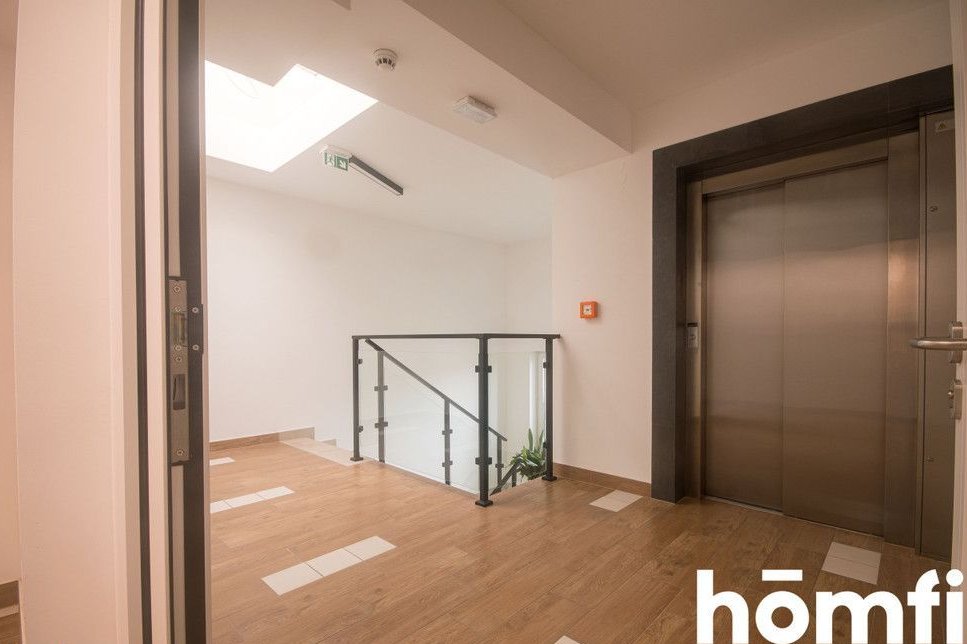 Nowoczesny budynek z 2023 roku – technologia żelbetowa, winda, wysoki standard wykończenia części wspólnych.