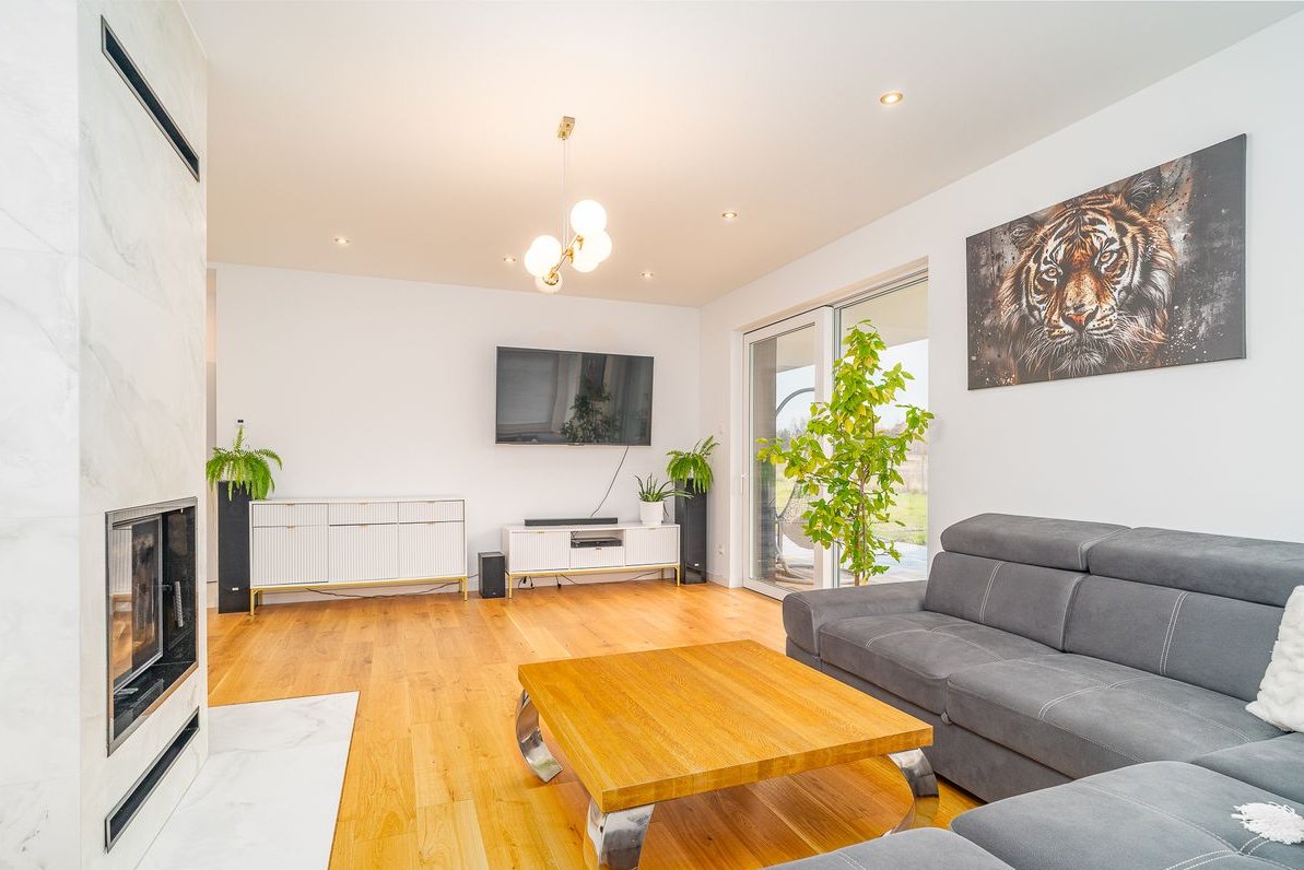 Dom wykończony w wysokim standardzie w 2025 roku. Budowany z pustaka ceramicznego, kryty blachodachówką. Wnętrze domu charakteryzuje się nowoczesnym stylem, a przez z uwagi na usytuowanie budynku względem stron świata oraz duże przeszklenia każde pomieszczenie jest bardzo mocno doświetlone. Dom nie wymaga wkładu finansowego - gotowy do zamieszkania.