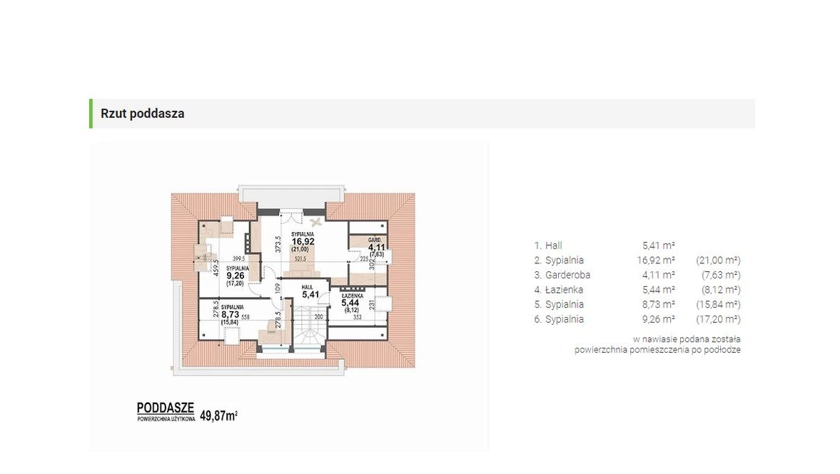 6.Sypialnia 9,26 m² (17,20 m²).