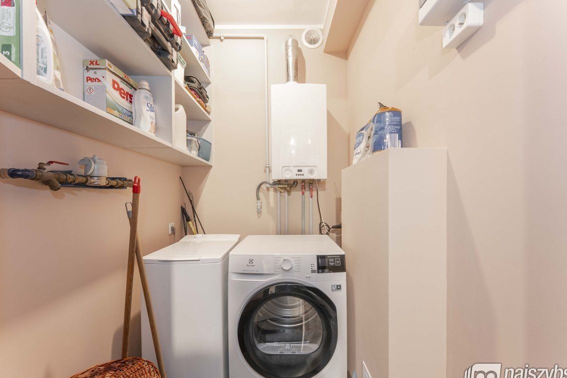 W lokalu zostaje większość umeblowania oraz pralka i suszarka w pomieszczeniu gospodarczym/