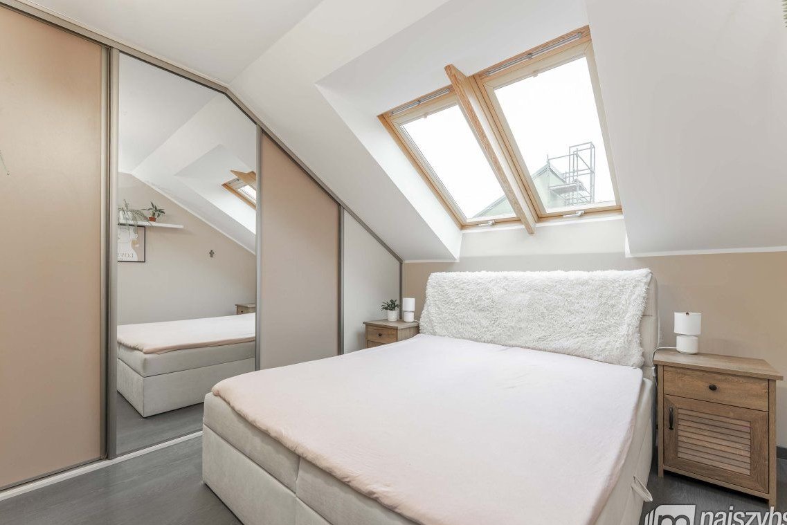 drugi poziom: dwie sypialnie, łazienka z wanną.