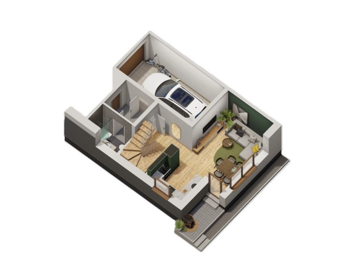Na sprzedaż domy w zabudowie szeregowej 5- pokojowe o powierzchni 112,43 m2 z garażem oraz skrajnymi, prywatnymi ogrodami od 82 do 133 m2 gwarantują mieszkańcom prywatność i komfort we własnej strefie relaksu na świeżym powietrzu.