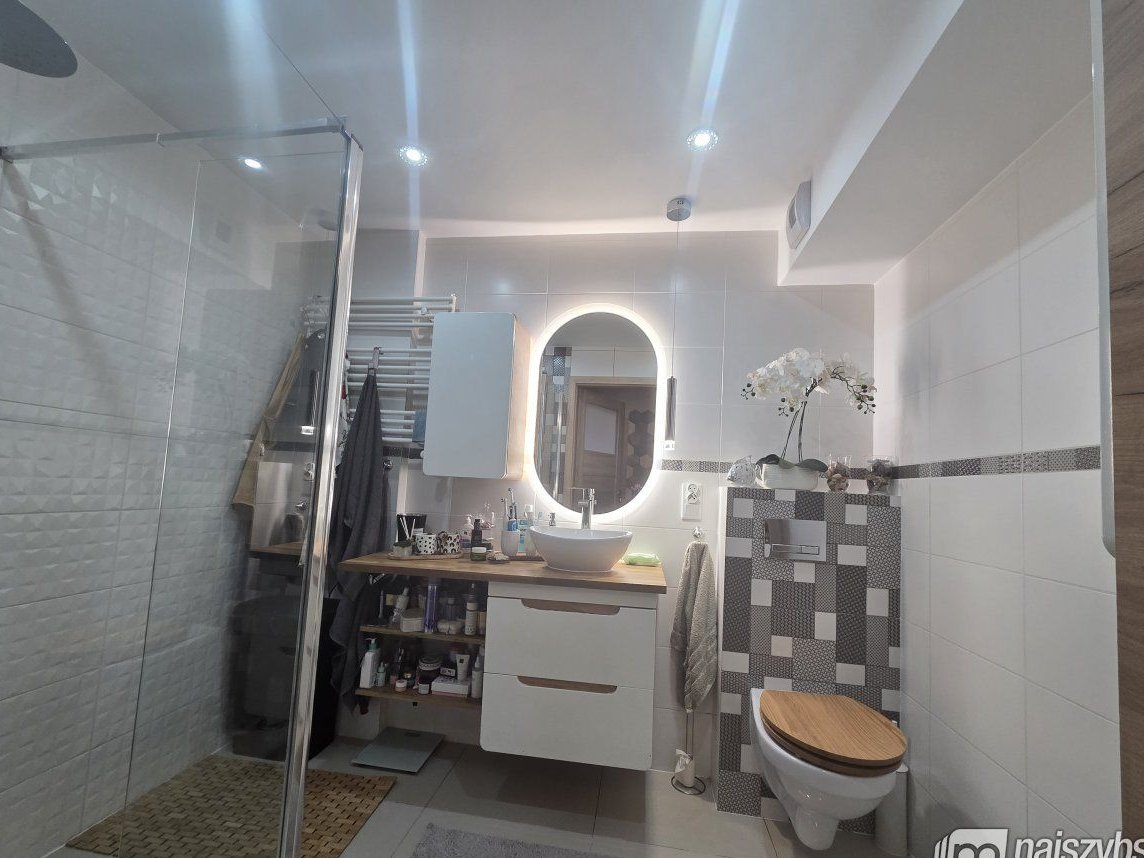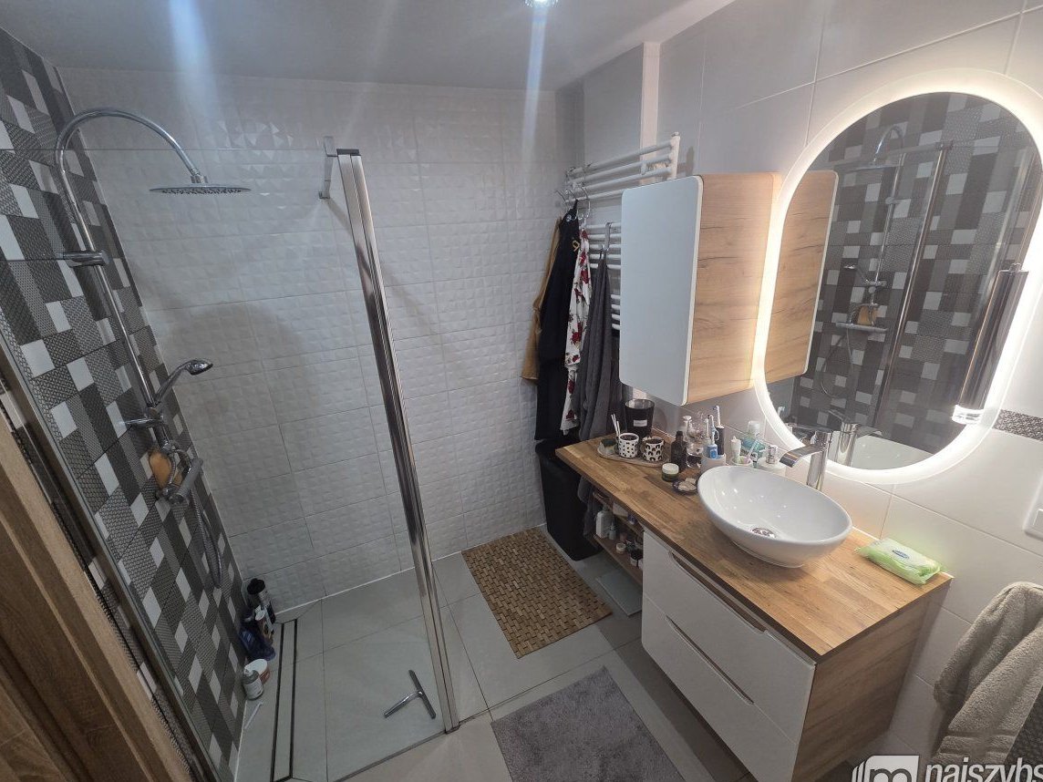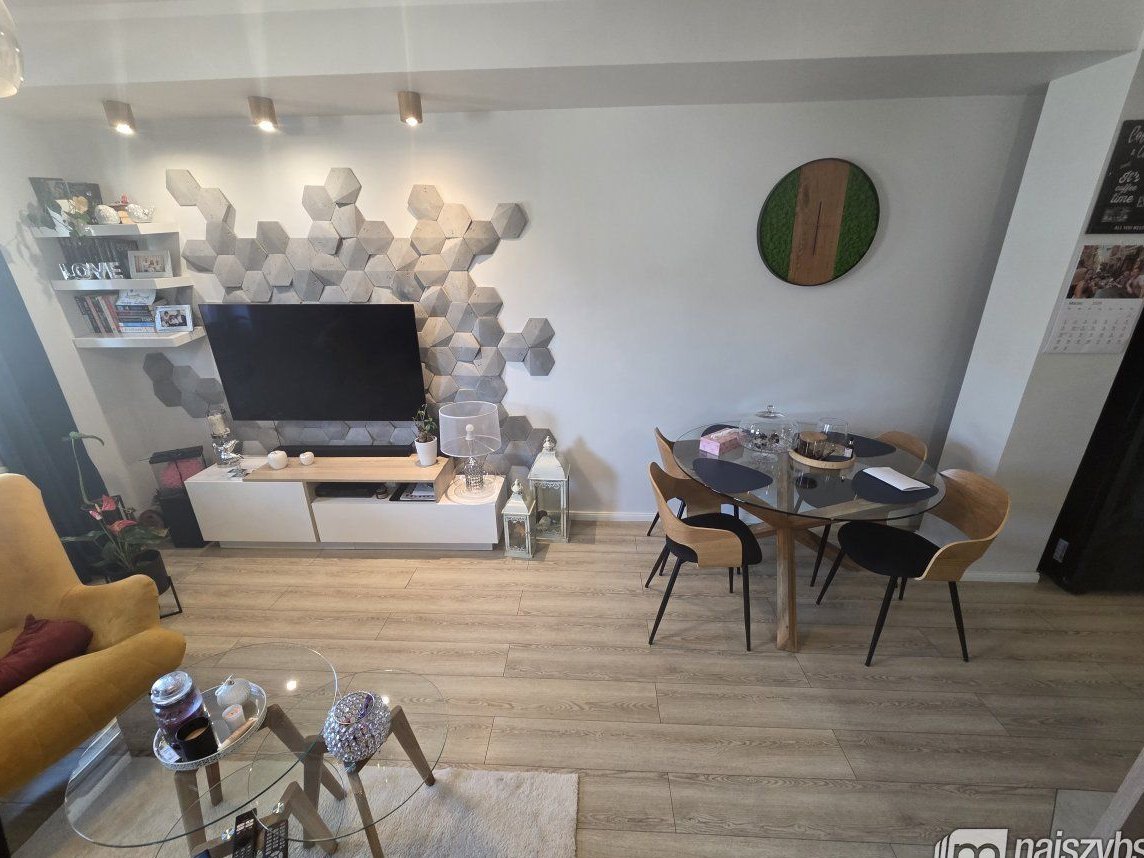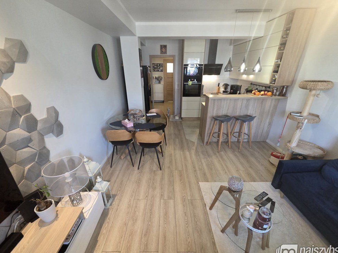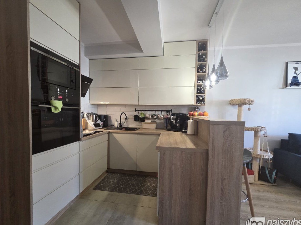 Mieszkanie wykończone bardzo przytulnie i wysokiej jakości materiałami budowlanymi i jest sprzedawane z całym widocznym wyposażeniem.