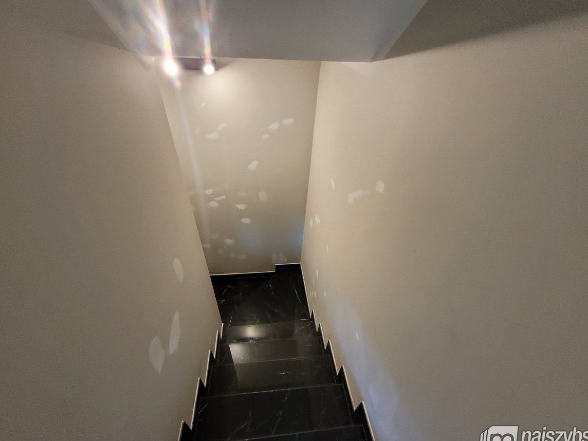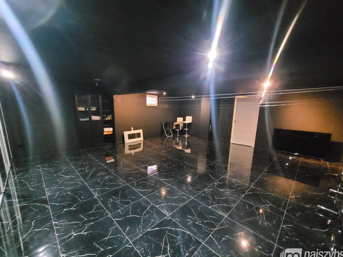 Wielka piwnica, w której znajduje się duże pomieszczeinie z zabudową szaf na całej ścianie - idealna przestrzeń na siłownię, bilard lub inne formy rekreacji.
