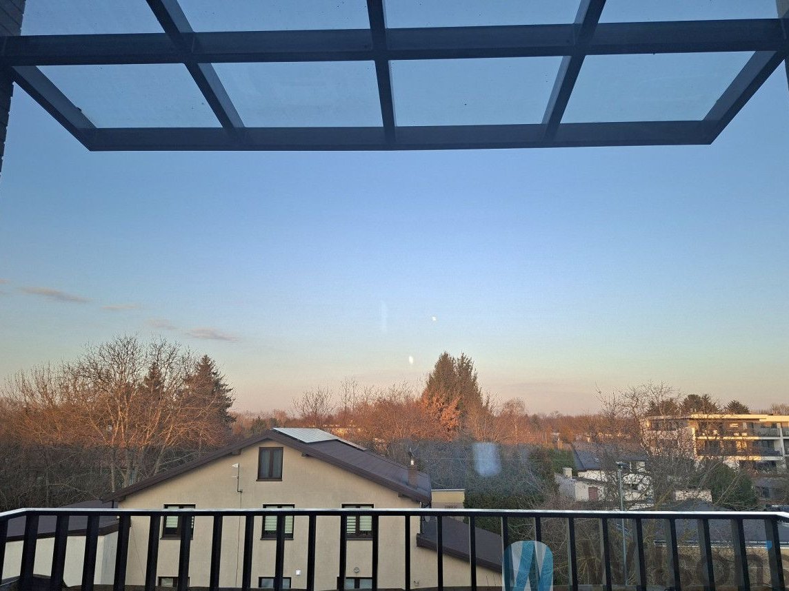 Z dużego, zadaszonego szklanym dachem balkonu w formie loggii (5,81 m. kw.), rozciąga się kojący widok na osiedle domów jednorodzinnych i drzewa. Drewniana podłoga zachęca do wypicia kawy na bosaka.