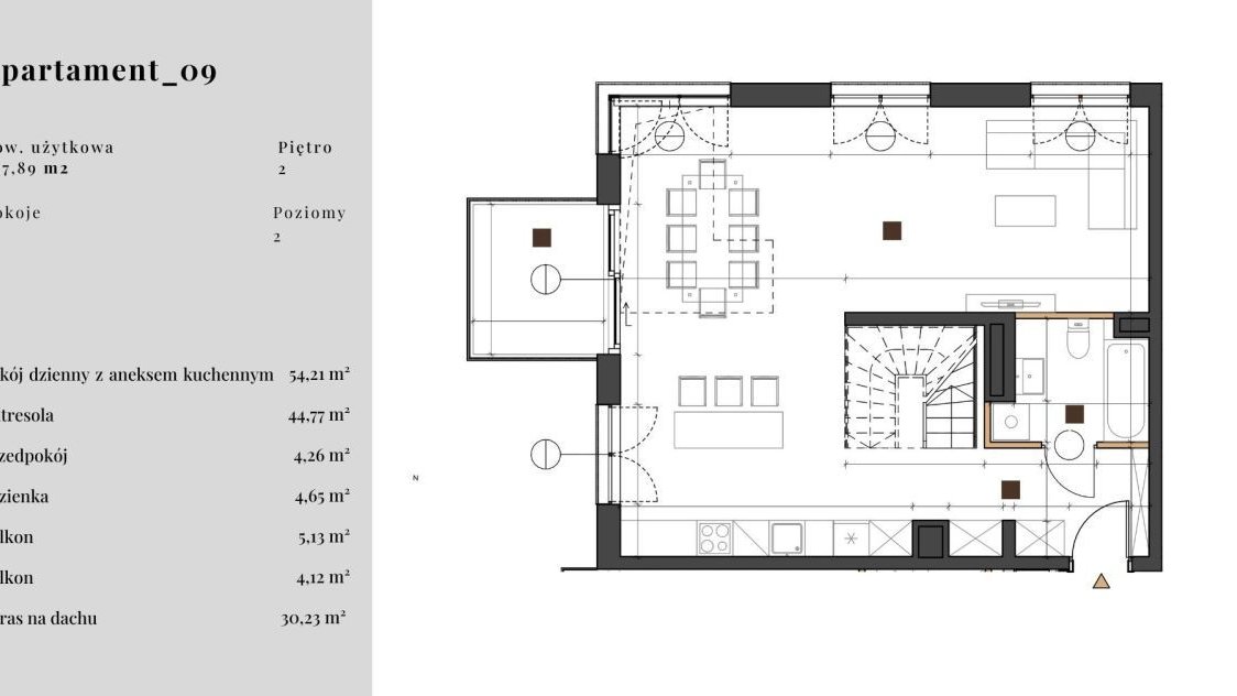 * Pokój dzienny z aneksem kuchennym - 54,21 m²,