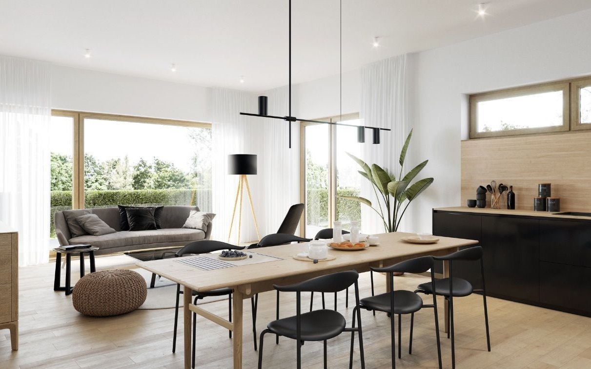 Przemyślany układ pomieszczeń zapewnia wygodną przestrzeń do życia dla całej rodziny.