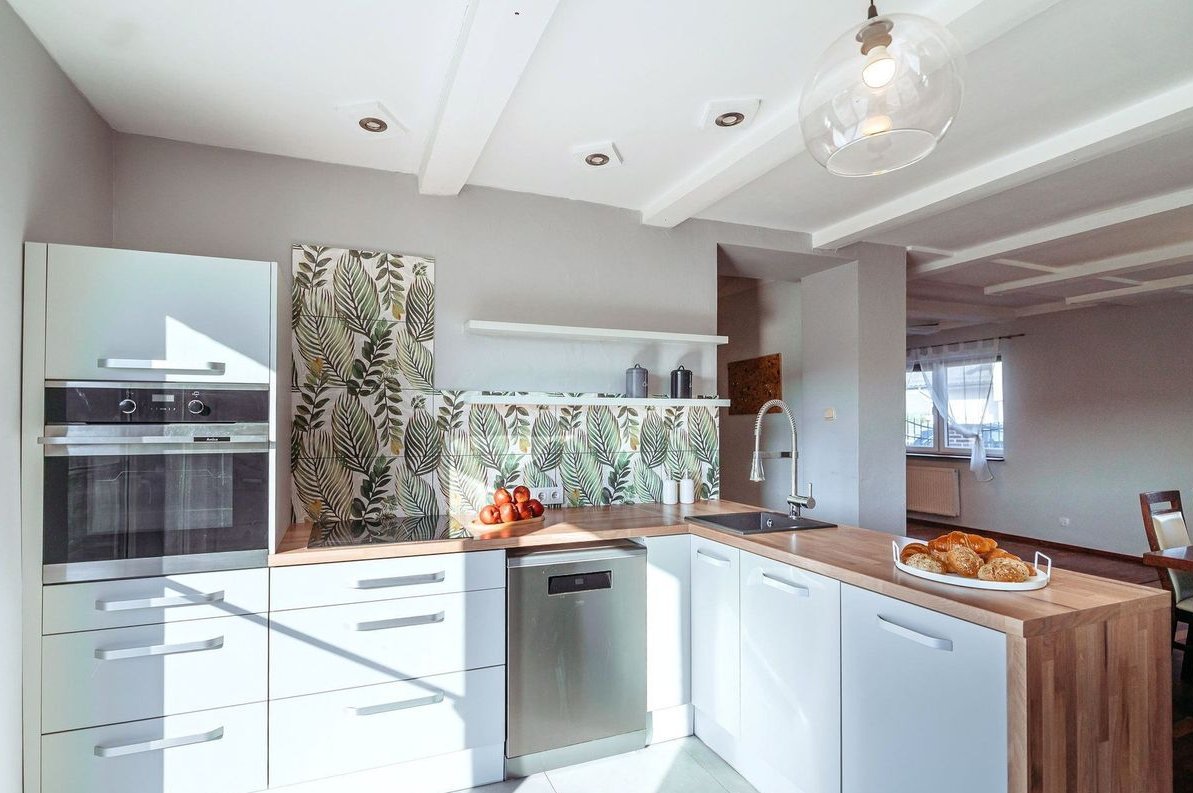 otwarta kuchnia z wyjściem na taras i ogród