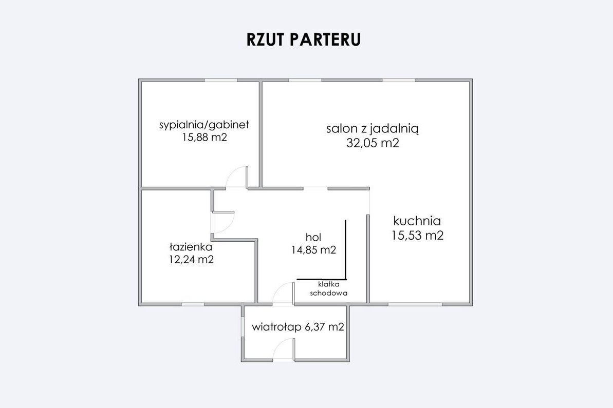 Rozkład pomieszczeń – rzut z powierzchniami w galerii: